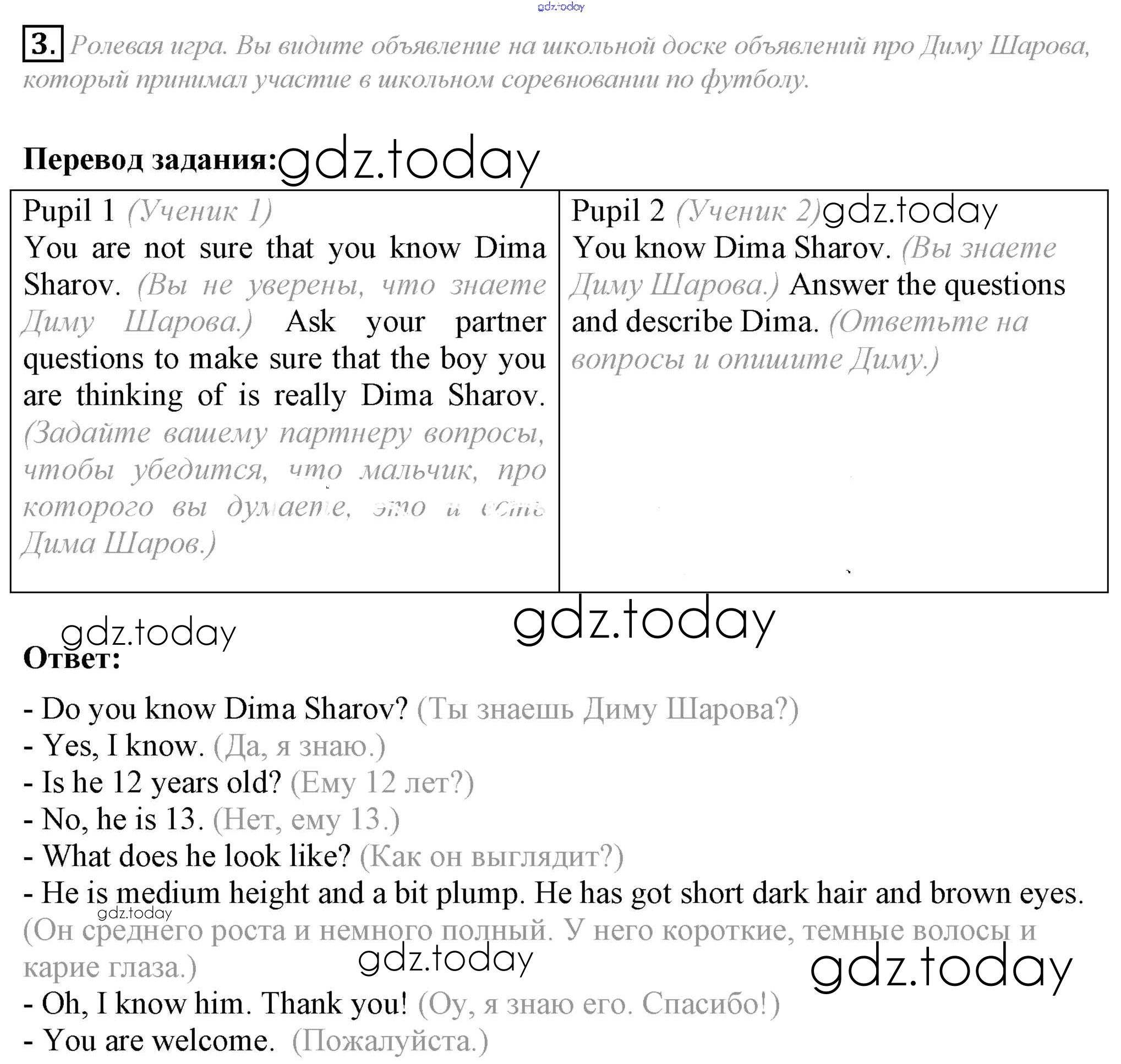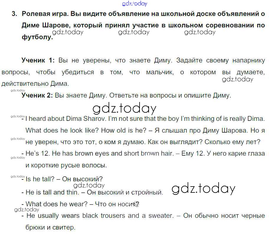 На страницах сайта gdz.today вы найдете учебный и вспомогательный материал, направленный на улучшения знаний школьной программы. ГДЗ - онлайн мир знаний Lesson 5 Решение к Unit 1. What do you look like? 3 Учебнику по Английскому языку для 6 класса Кузовлев, Лапа Просвещение Академический школьный учебник 2014