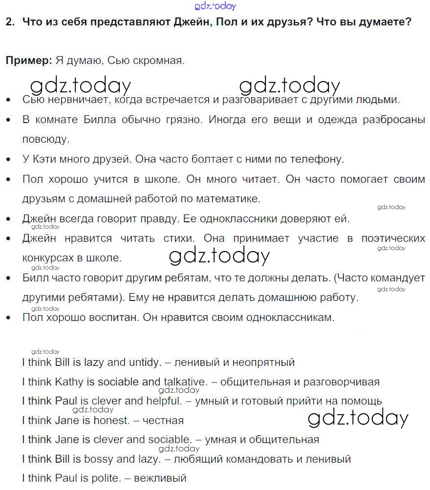 На страницах сайта gdz.today вы найдете учебный и вспомогательный материал, направленный на улучшения знаний школьной программы. ГДЗ - онлайн мир знаний Lesson 1 Решение к Unit 2. What are you like? 2 Учебнику по Английскому языку для 6 класса Кузовлев, Лапа Просвещение Академический школьный учебник 2014