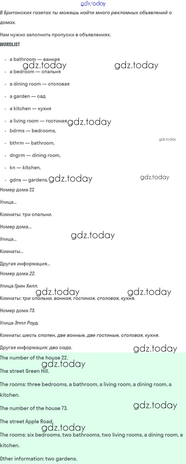 На страницах сайта gdz.today вы найдете учебный и вспомогательный материал, направленный на улучшения знаний школьной программы. ГДЗ - онлайн мир знаний Lesson 2 Решение к Unit 3. Home, sweet home 7 Учебнику по Английскому языку для 6 класса Кузовлев, Лапа Просвещение Академический школьный учебник 2014
