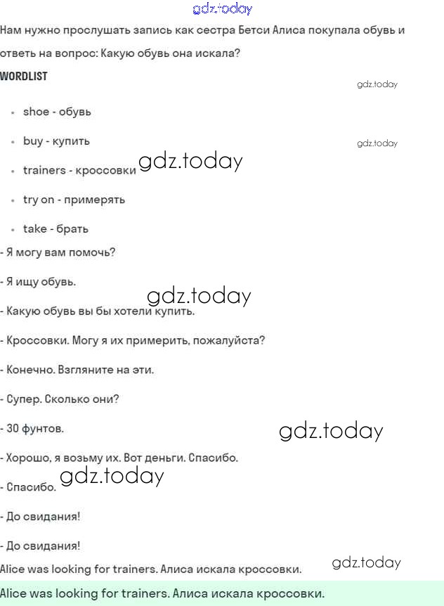 На страницах сайта gdz.today вы найдете учебный и вспомогательный материал, направленный на улучшения знаний школьной программы. ГДЗ - онлайн мир знаний Lesson 5 Решение к Unit 4. Do you like to go shopping? 1 Учебнику по Английскому языку для 6 класса Кузовлев, Лапа Просвещение Академический школьный учебник 2014