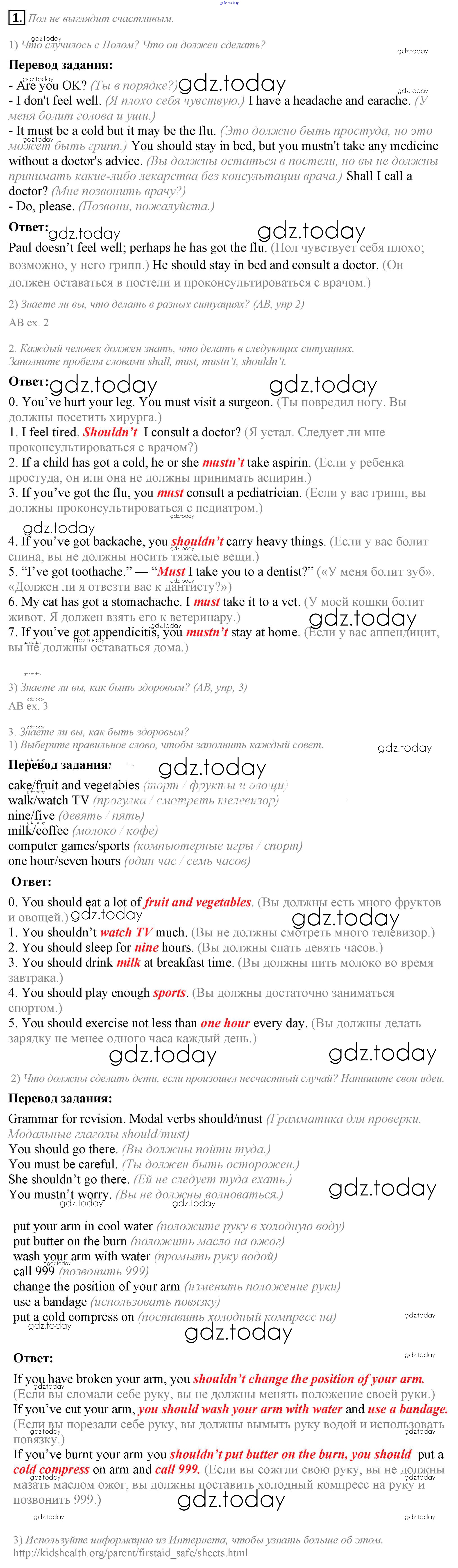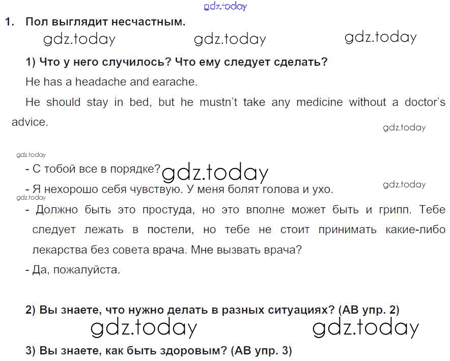 Ответы к Lesson 2-3 Решение к Unit 5. Do you care about your health? 1 Учебнику по Английскому языку для 6 класса Кузовлев, Лапа Просвещение Академический школьный учебник 2014