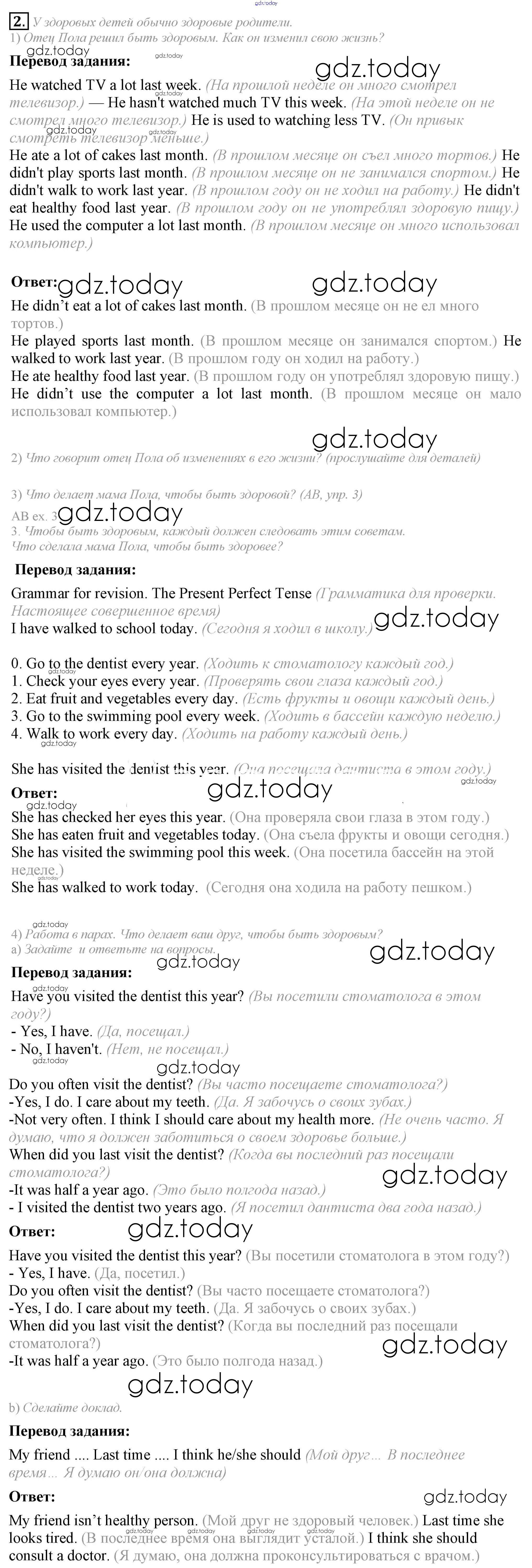 Ответы к Lesson 4-5 Решение к Unit 5. Do you care about your health? 2 Учебнику по Английскому языку для 6 класса Кузовлев, Лапа Просвещение Академический школьный учебник 2014