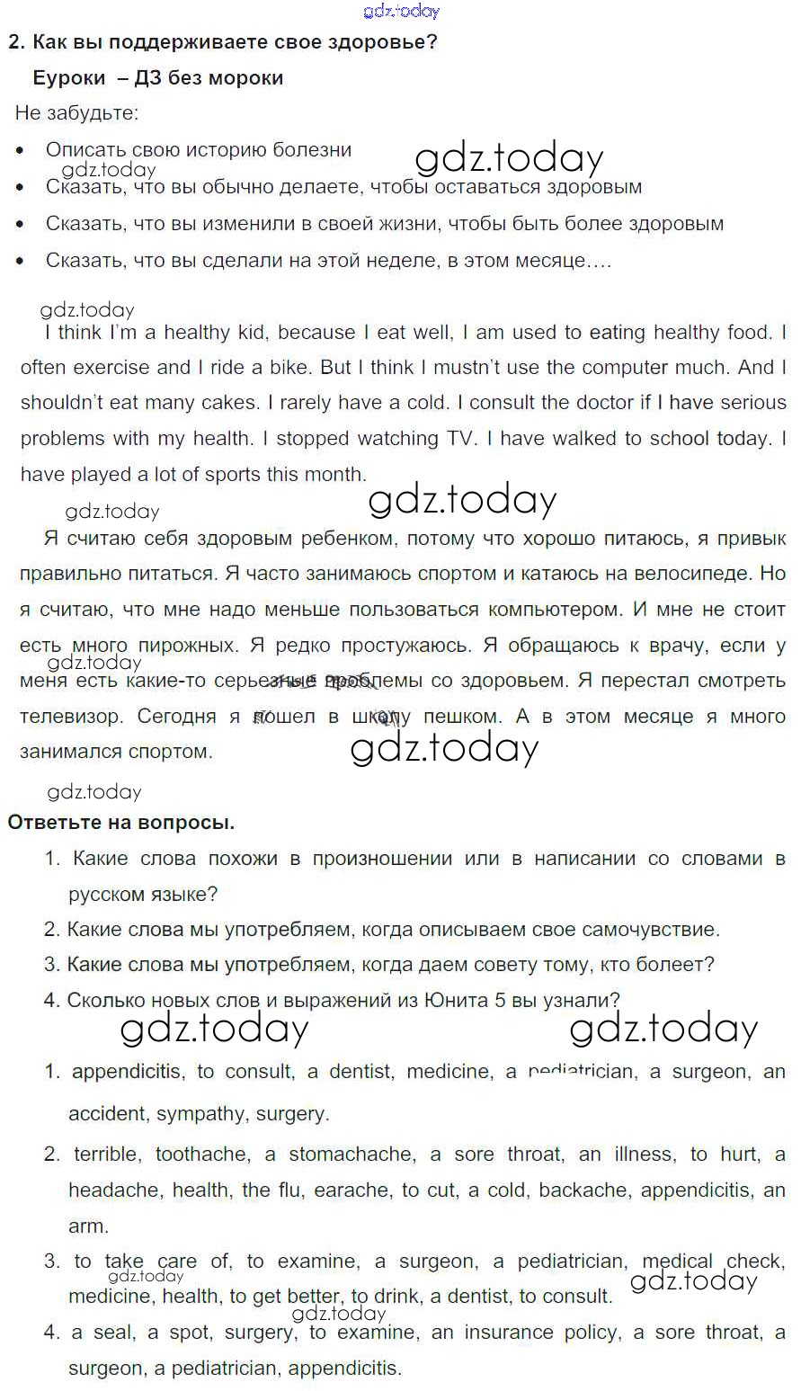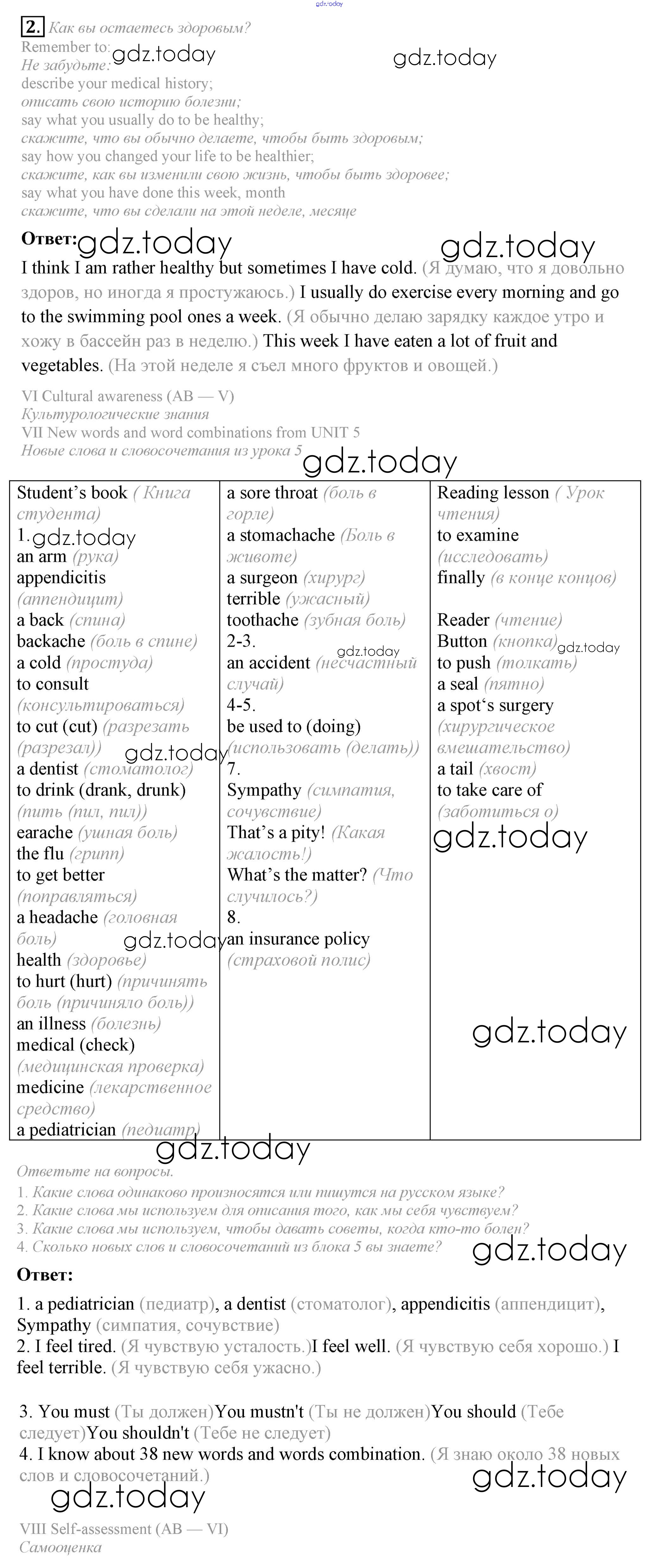 Решение к Unit 5. Do you care about your health?