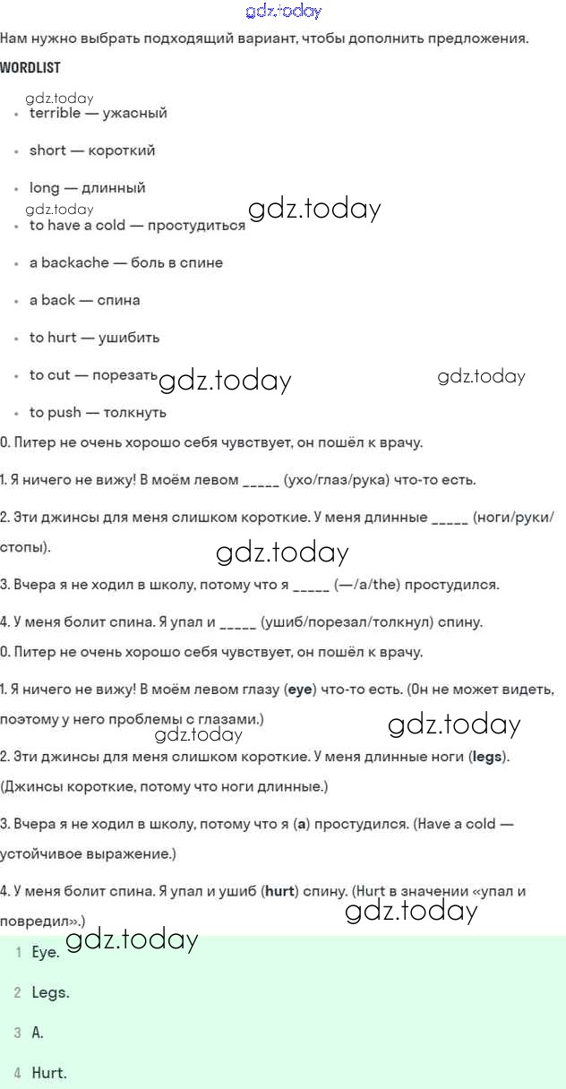 На страницах сайта gdz.today вы найдете учебный и вспомогательный материал, направленный на улучшения знаний школьной программы. ГДЗ - онлайн мир знаний Next lesson is a consolidation lesson Решение к Unit 5. Do you care about your health? 1 Учебнику по Английскому языку для 6 класса Кузовлев, Лапа Просвещение Академический школьный учебник 2014