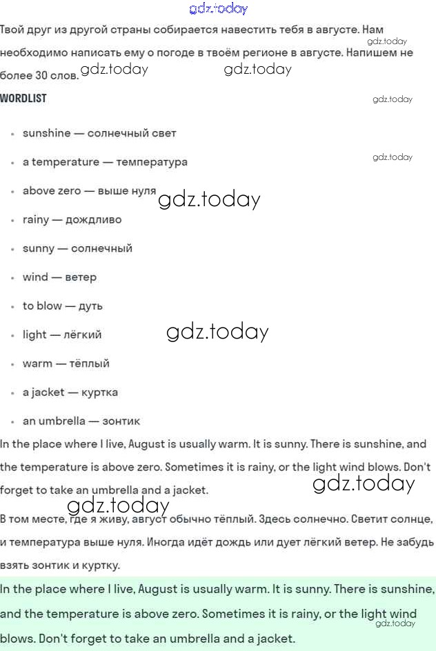 На страницах сайта gdz.today вы найдете учебный и вспомогательный материал, направленный на улучшения знаний школьной программы. ГДЗ - онлайн мир знаний Lesson 7 Решение к Unit 6. Whatever the weather... 5 Учебнику по Английскому языку для 6 класса Кузовлев, Лапа Просвещение Академический школьный учебник 2014