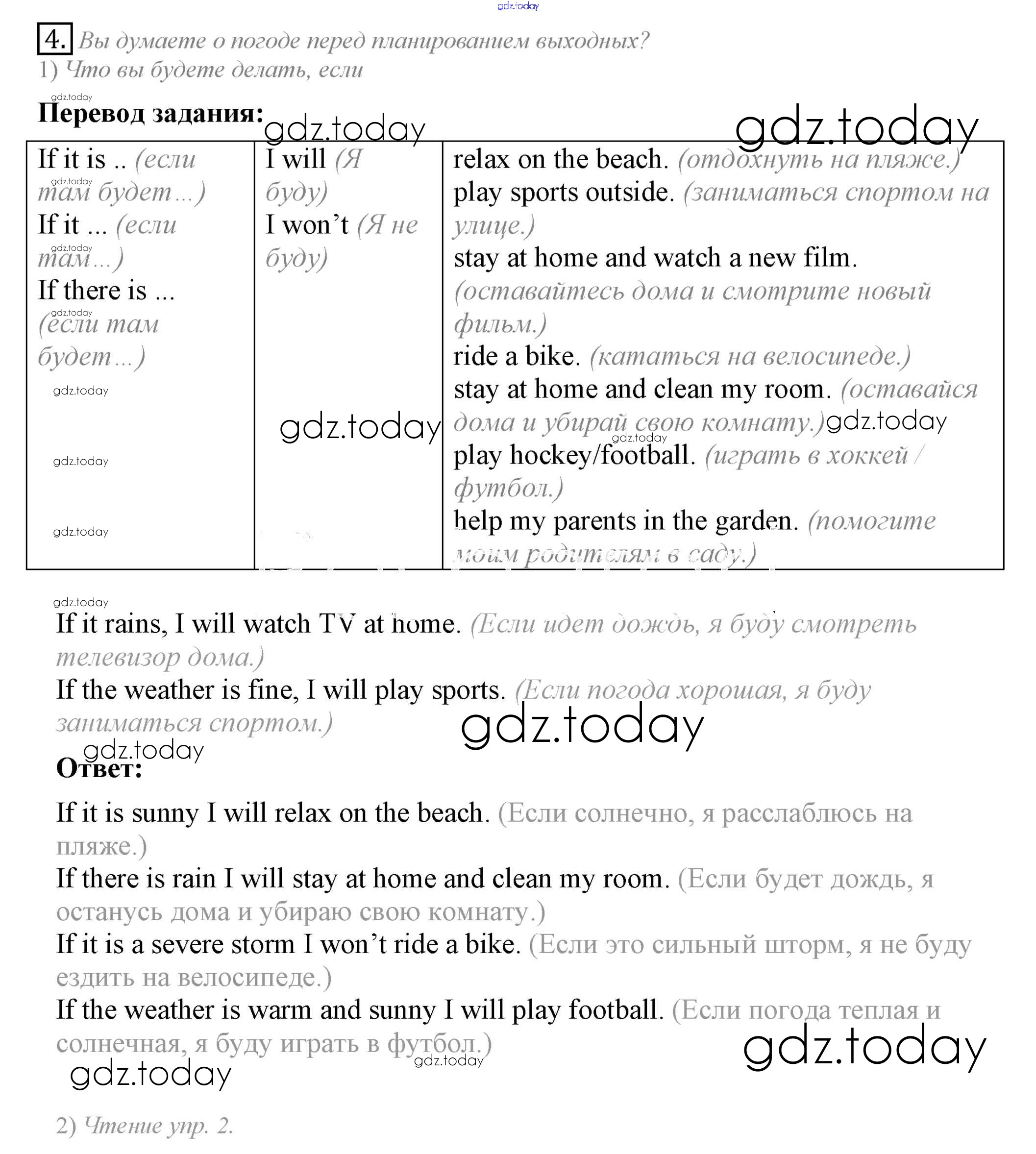 На страницах сайта gdz.today вы найдете учебный и вспомогательный материал, направленный на улучшения знаний школьной программы. ГДЗ - онлайн мир знаний Lesson 2 Решение к Unit 6. Whatever the weather... 4 Учебнику по Английскому языку для 6 класса Кузовлев, Лапа Просвещение Академический школьный учебник 2014