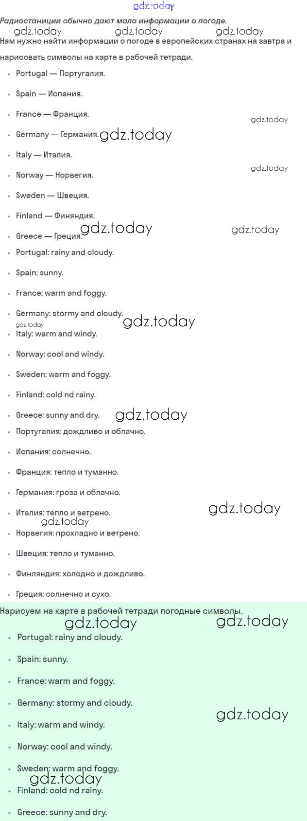 На страницах сайта gdz.today вы найдете учебный и вспомогательный материал, направленный на улучшения знаний школьной программы. ГДЗ - онлайн мир знаний Lesson 3 Решение к Unit 6. Whatever the weather... 6 Учебнику по Английскому языку для 6 класса Кузовлев, Лапа Просвещение Академический школьный учебник 2014