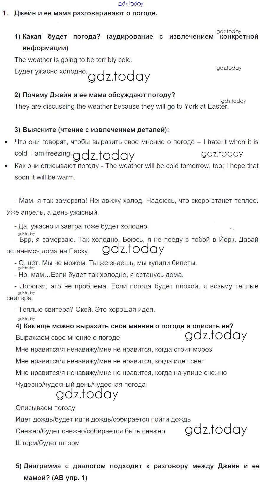Ответы к Lesson 5 Решение к Unit 6. Whatever the weather... 1 Учебнику по Английскому языку для 6 класса Кузовлев, Лапа Просвещение Академический школьный учебник 2014