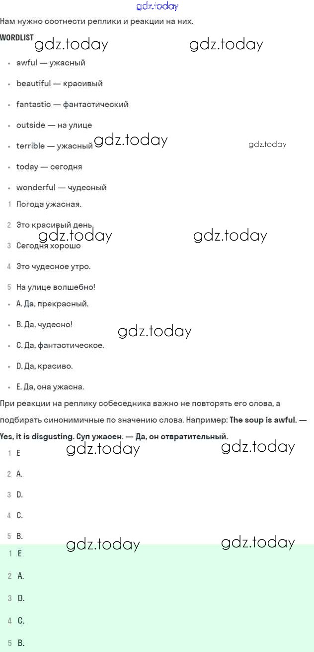 Ответы к Lesson 5 Решение к Unit 6. Whatever the weather... 2 Учебнику по Английскому языку для 6 класса Кузовлев, Лапа Просвещение Академический школьный учебник 2014