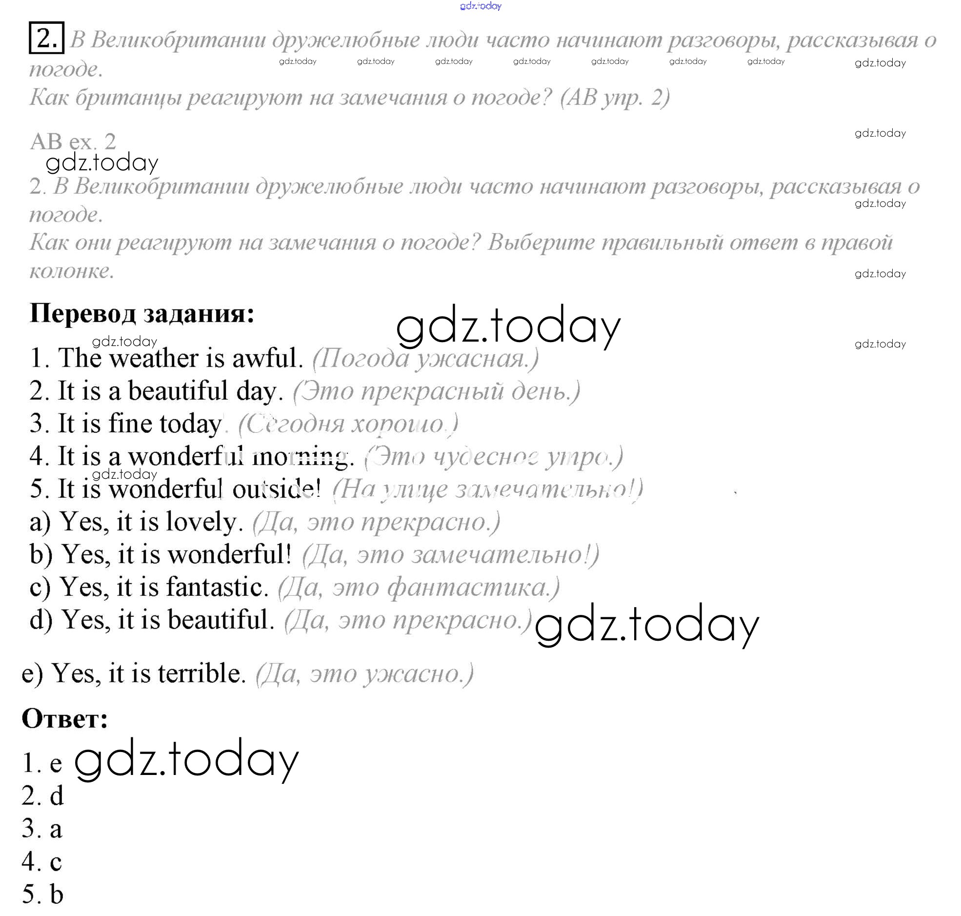 На страницах сайта gdz.today вы найдете учебный и вспомогательный материал, направленный на улучшения знаний школьной программы. ГДЗ - онлайн мир знаний Lesson 5 Решение к Unit 6. Whatever the weather... 2 Учебнику по Английскому языку для 6 класса Кузовлев, Лапа Просвещение Академический школьный учебник 2014
