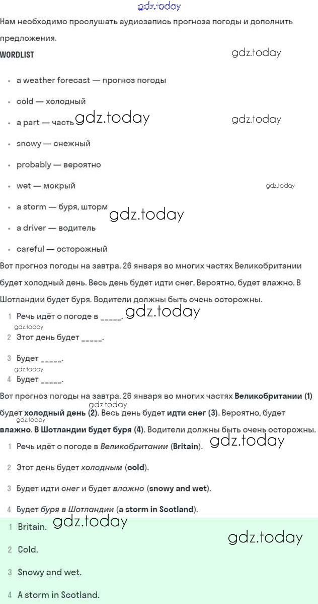 Ответы к Lesson 7 Решение к Unit 6. Whatever the weather... 1 Учебнику по Английскому языку для 6 класса Кузовлев, Лапа Просвещение Академический школьный учебник 2014
