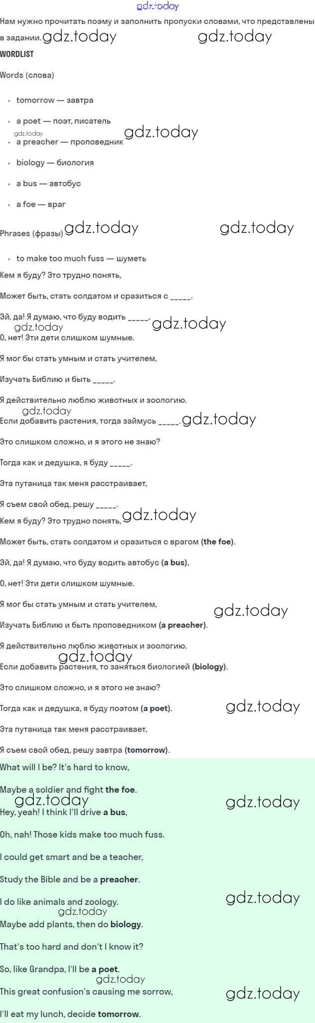 На страницах сайта gdz.today вы найдете учебный и вспомогательный материал, направленный на улучшения знаний школьной программы. ГДЗ - онлайн мир знаний Lesson 1-2 Решение к Unit 7. What are you going to be? 5 Учебнику по Английскому языку для 6 класса Кузовлев, Лапа Просвещение Академический школьный учебник 2014