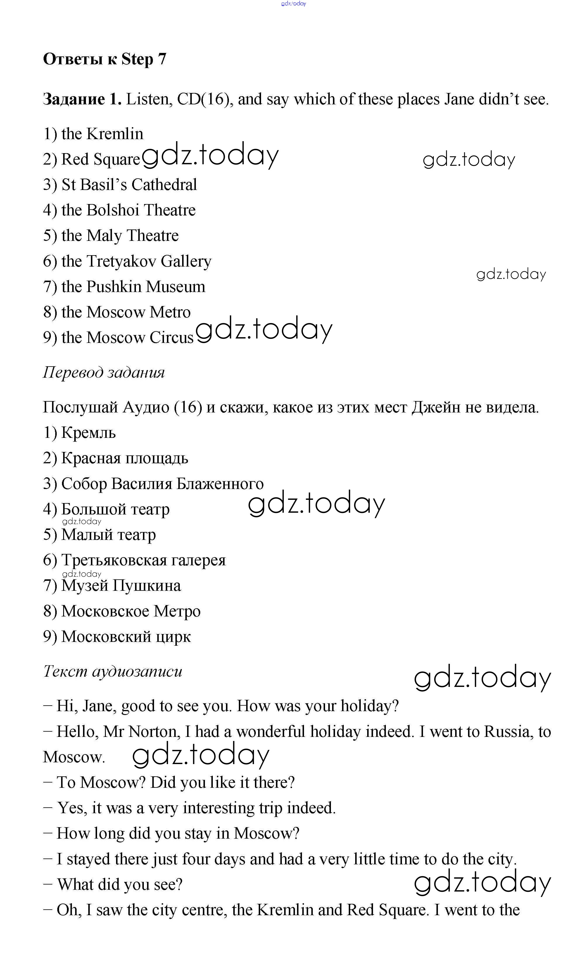 На страницах сайта gdz.today вы найдете учебный и вспомогательный материал, направленный на улучшения знаний школьной программы. ГДЗ - онлайн мир знаний Step 7 Решение к Unit 1 1 Учебнику по Английскому языку для 6 класса Афанасьева, Михеева Дрофа Rainbow 2017