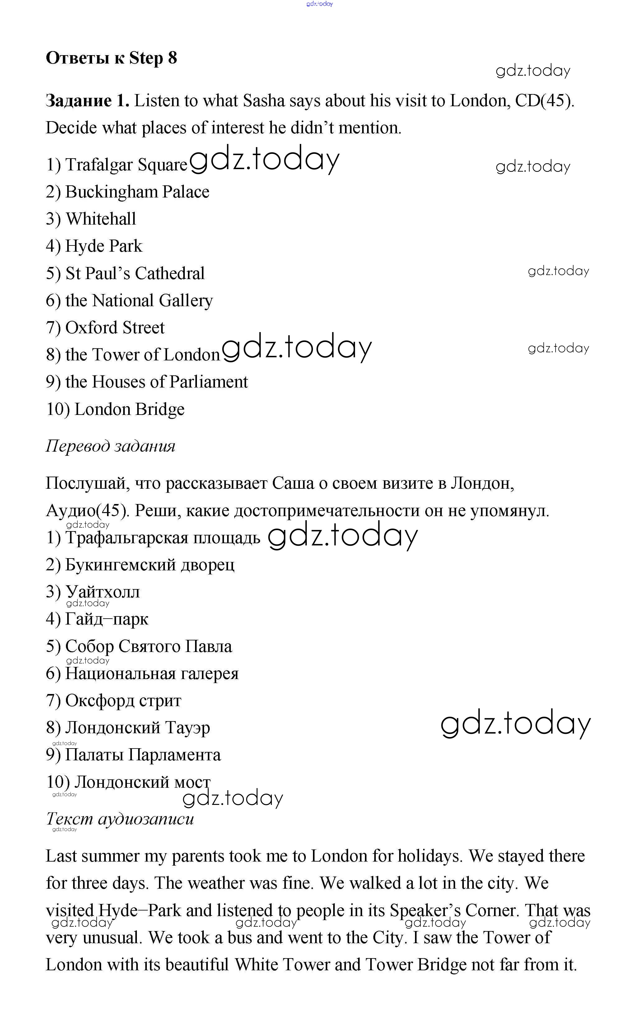 Ответы к Step 8 Решение к Unit 2 1 Учебнику по Английскому языку для 6 класса Афанасьева, Михеева Дрофа Rainbow 2017