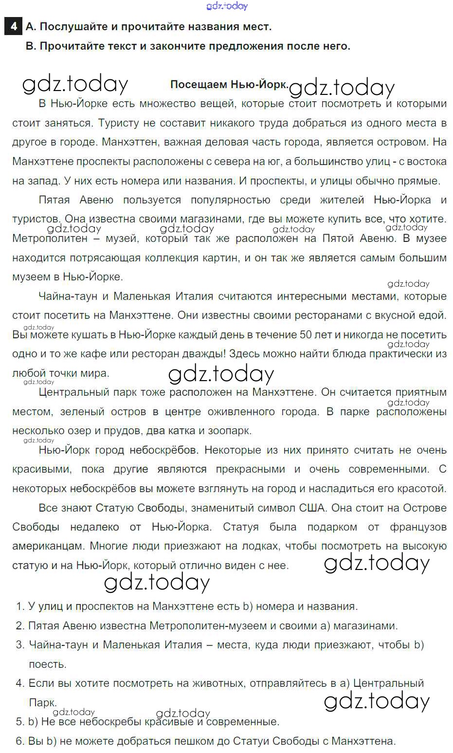 На страницах сайта gdz.today вы найдете учебный и вспомогательный материал, направленный на улучшения знаний школьной программы. ГДЗ - онлайн мир знаний Step 7 Решение к Unit 4 4 Учебнику по Английскому языку для 6 класса Афанасьева, Михеева Дрофа Rainbow 2017
