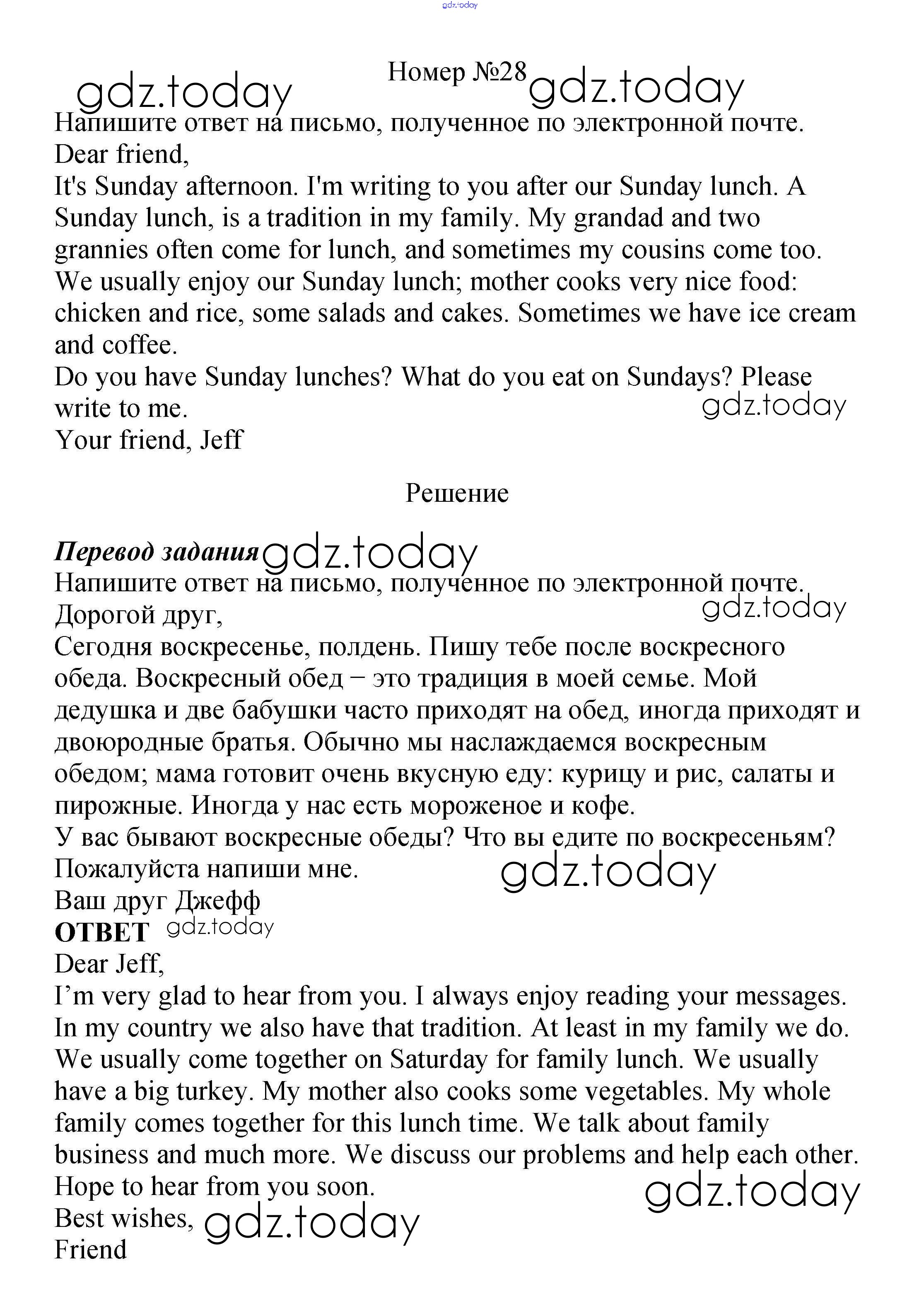 На страницах сайта gdz.today вы найдете учебный и вспомогательный материал, направленный на улучшения знаний школьной программы. ГДЗ - онлайн мир знаний Unit 6 (решение) 28 Рабочей тетради по Английскому языку для 6 класса Афанасьева, Михеева Дрофа Новый курс 2017