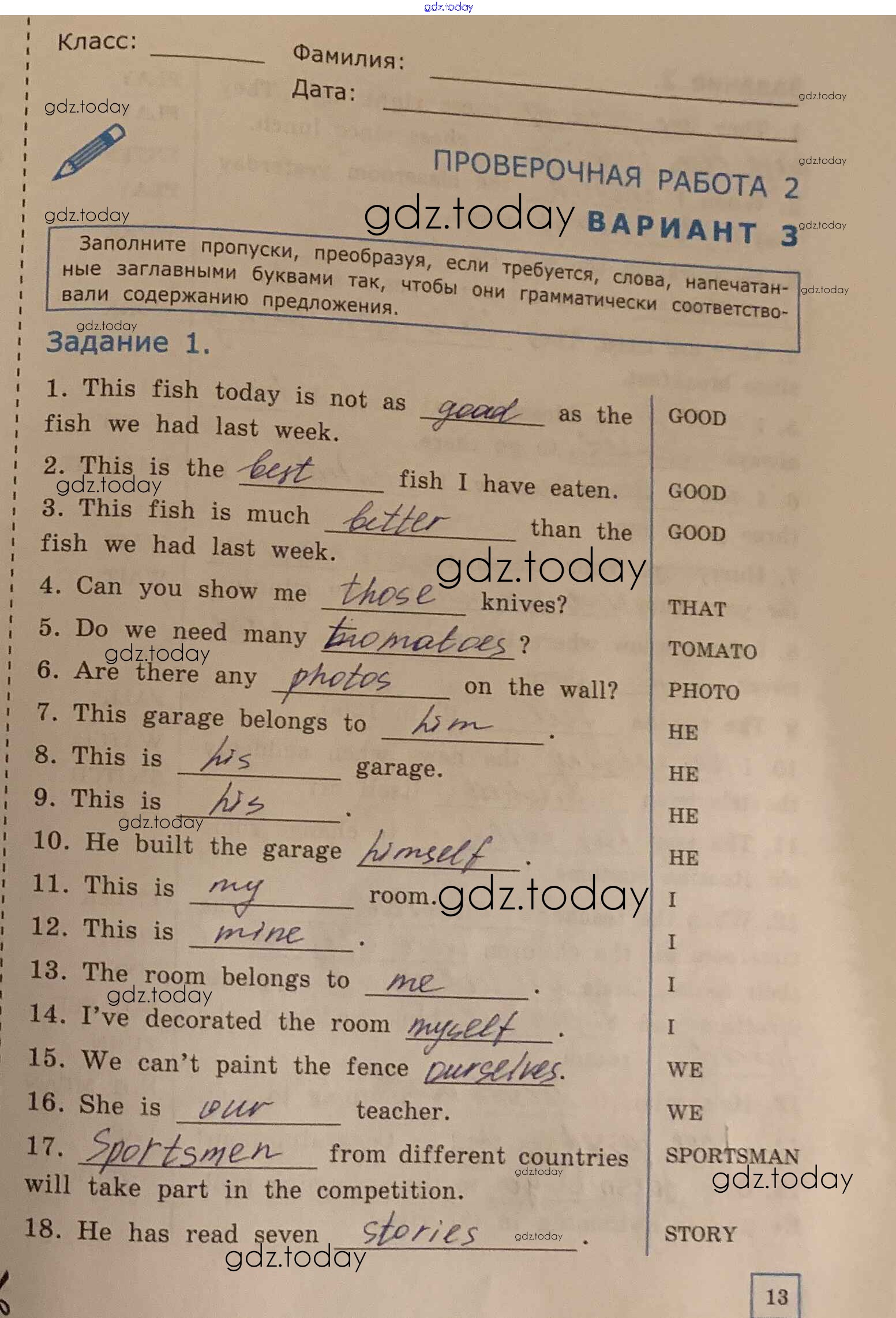 На страницах сайта gdz.today вы найдете учебный и вспомогательный материал, направленный на улучшения знаний школьной программы. ГДЗ - онлайн мир знаний Решение к проверочной работе №2 вариант 3 Проверочным работам по Английскому языку для 6 класса Барашкова Экзамен УМК 2017