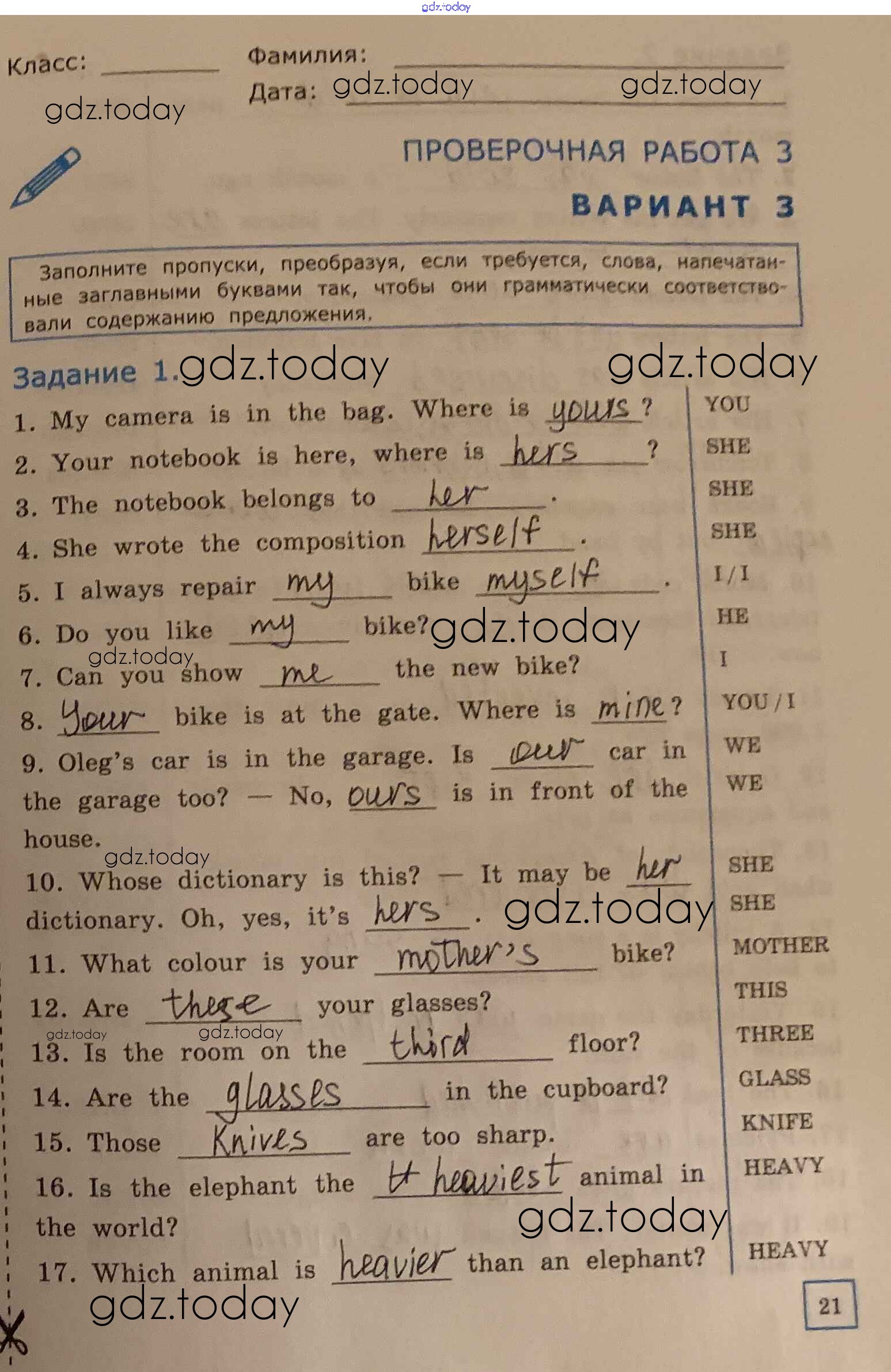 На страницах сайта gdz.today вы найдете учебный и вспомогательный материал, направленный на улучшения знаний школьной программы. ГДЗ - онлайн мир знаний Решение к проверочной работе №3 вариант 3 Проверочным работам по Английскому языку для 6 класса Барашкова Экзамен УМК 2017