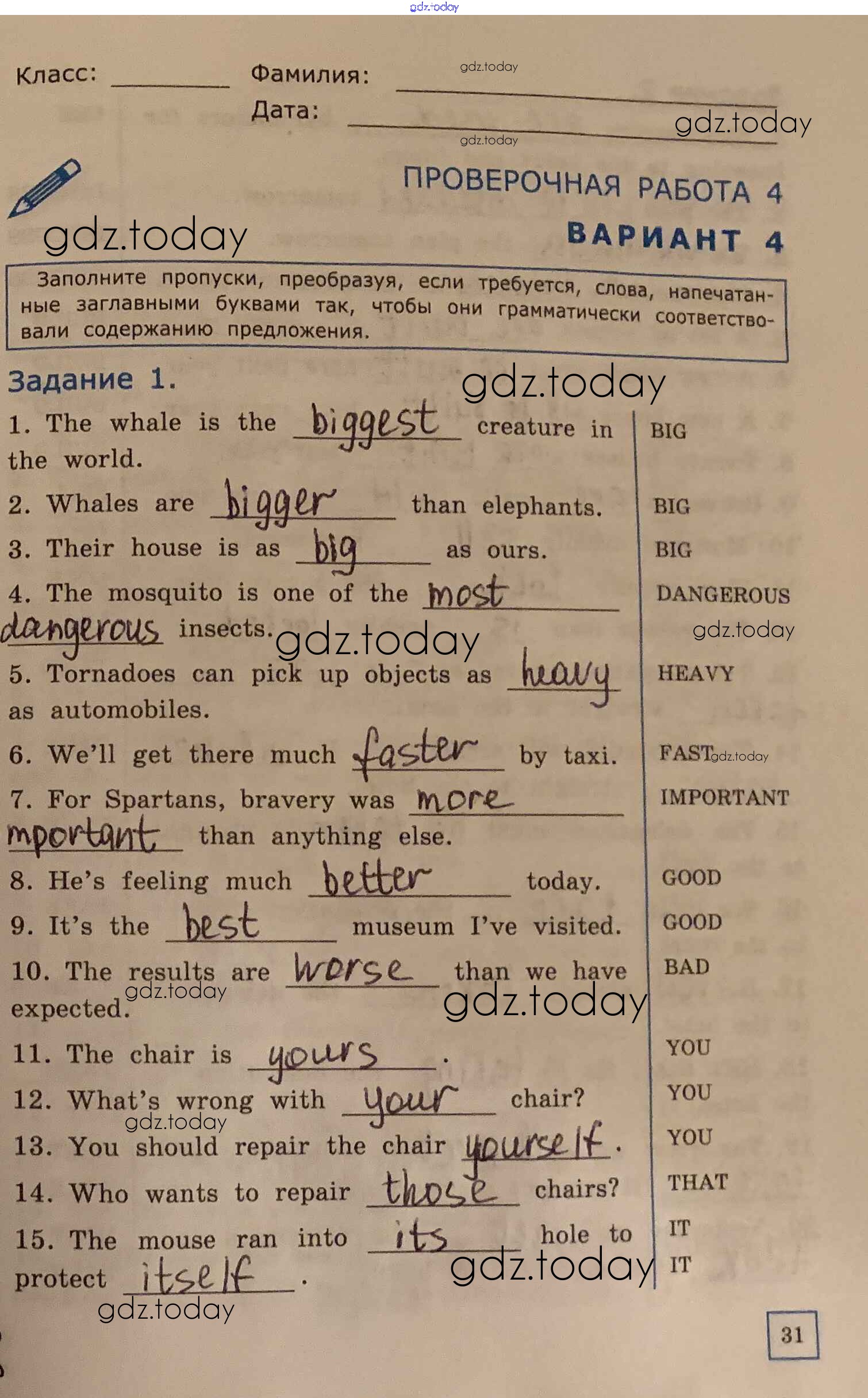 На страницах сайта gdz.today вы найдете учебный и вспомогательный материал, направленный на улучшения знаний школьной программы. ГДЗ - онлайн мир знаний Решение к проверочной работе №4 вариант 4 Проверочным работам по Английскому языку для 6 класса Барашкова Экзамен УМК 2017