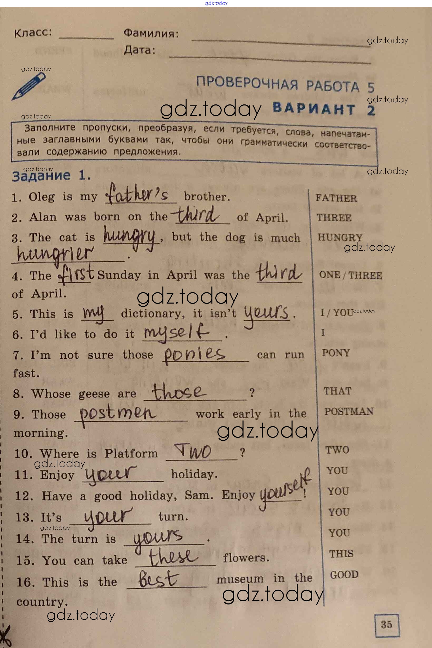 На страницах сайта gdz.today вы найдете учебный и вспомогательный материал, направленный на улучшения знаний школьной программы. ГДЗ - онлайн мир знаний Решение к проверочной работе №5 вариант 2 Проверочным работам по Английскому языку для 6 класса Барашкова Экзамен УМК 2017