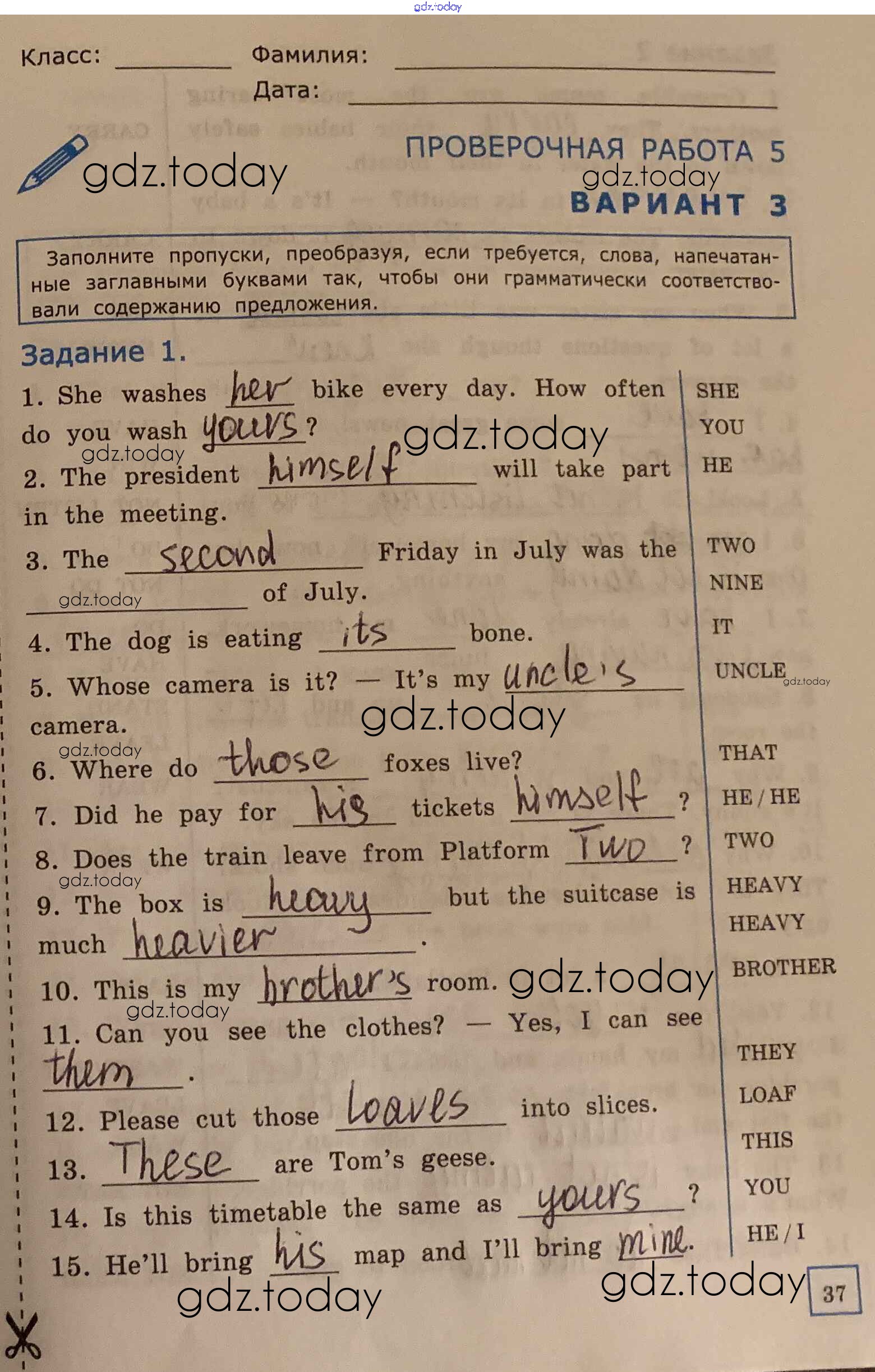 На страницах сайта gdz.today вы найдете учебный и вспомогательный материал, направленный на улучшения знаний школьной программы. ГДЗ - онлайн мир знаний Решение к проверочной работе №5 вариант 3 Проверочным работам по Английскому языку для 6 класса Барашкова Экзамен УМК 2017