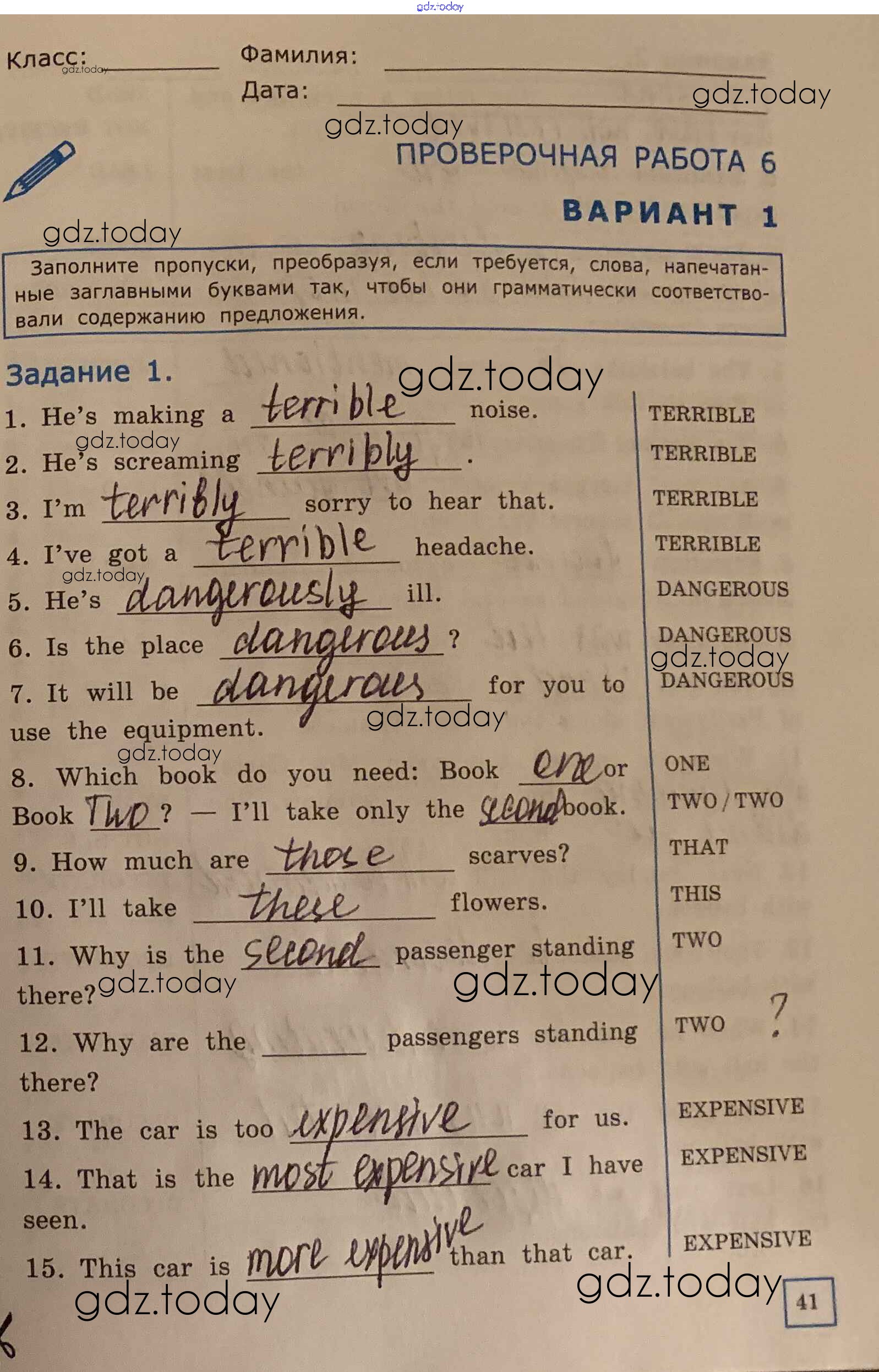 На страницах сайта gdz.today вы найдете учебный и вспомогательный материал, направленный на улучшения знаний школьной программы. ГДЗ - онлайн мир знаний Решение к проверочной работе №6 вариант 1 Проверочным работам по Английскому языку для 6 класса Барашкова Экзамен УМК 2017