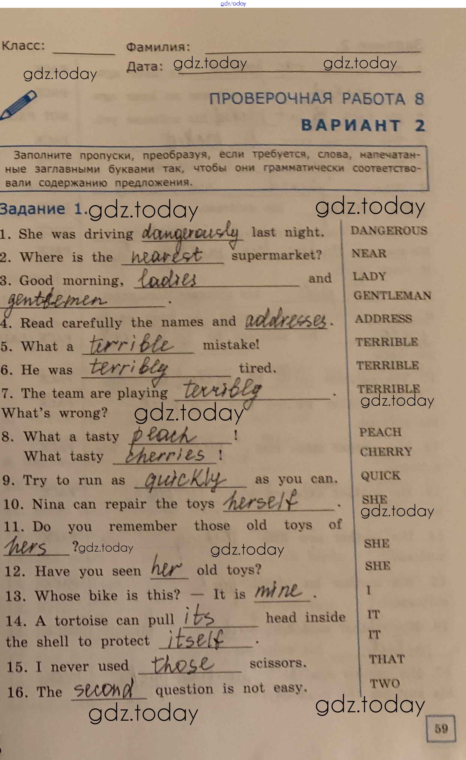 На страницах сайта gdz.today вы найдете учебный и вспомогательный материал, направленный на улучшения знаний школьной программы. ГДЗ - онлайн мир знаний Решение к проверочной работе №8 вариант 2 Проверочным работам по Английскому языку для 6 класса Барашкова Экзамен УМК 2017