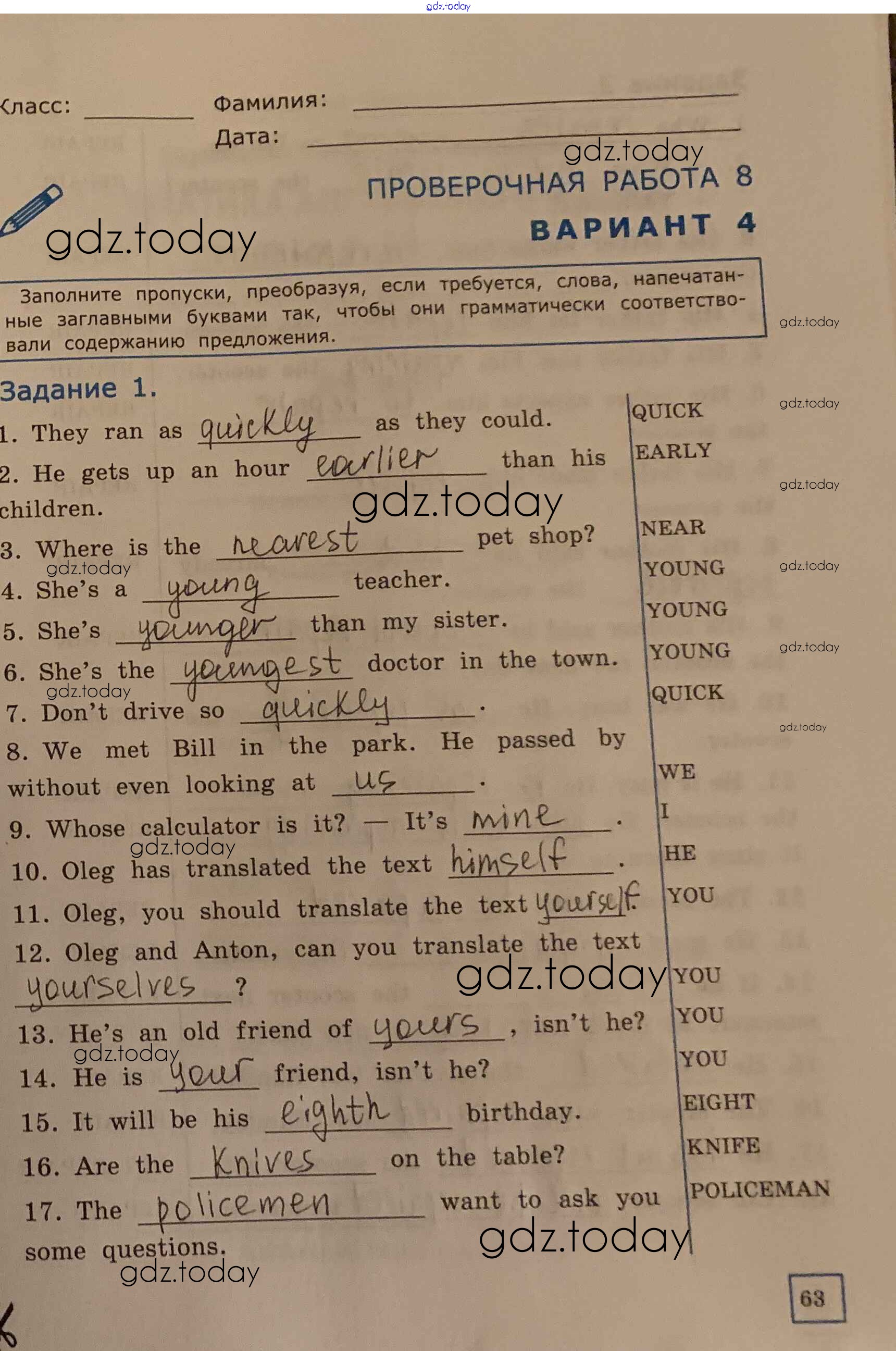 На страницах сайта gdz.today вы найдете учебный и вспомогательный материал, направленный на улучшения знаний школьной программы. ГДЗ - онлайн мир знаний Решение к проверочной работе №8 вариант 4 Проверочным работам по Английскому языку для 6 класса Барашкова Экзамен УМК 2017