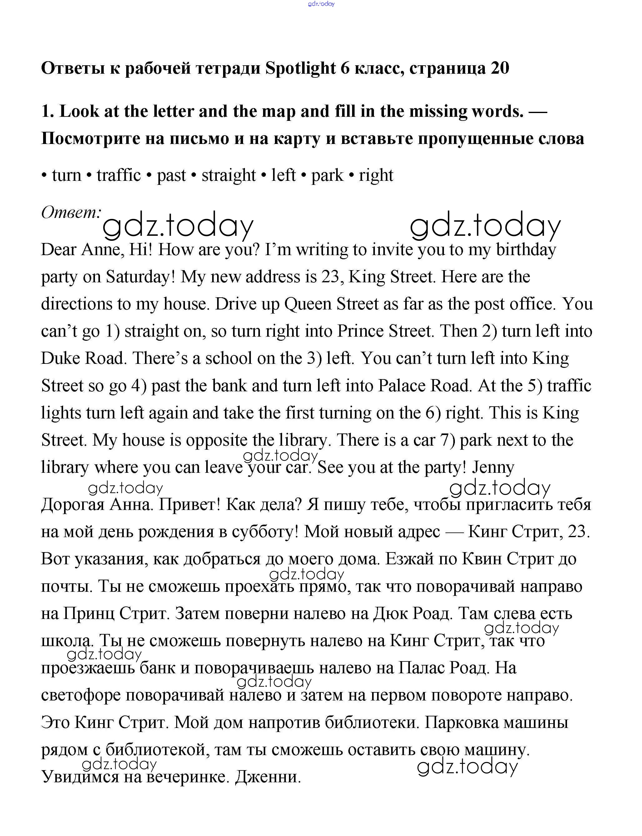 На страницах сайта gdz.today вы найдете учебный и вспомогательный материал, направленный на улучшения знаний школьной программы. ГДЗ - онлайн мир знаний Страницы (решение) 20 Рабочей тетради по Английскому языку для 6 класса Эванс, Дули Просвещение Spotlight 2011