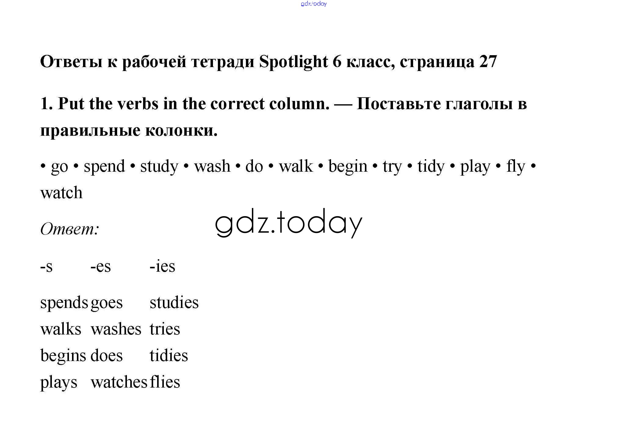Ответы к Страницы (решение) 27 Рабочей тетради по Английскому языку для 6 класса Эванс, Дули Просвещение Spotlight 2011