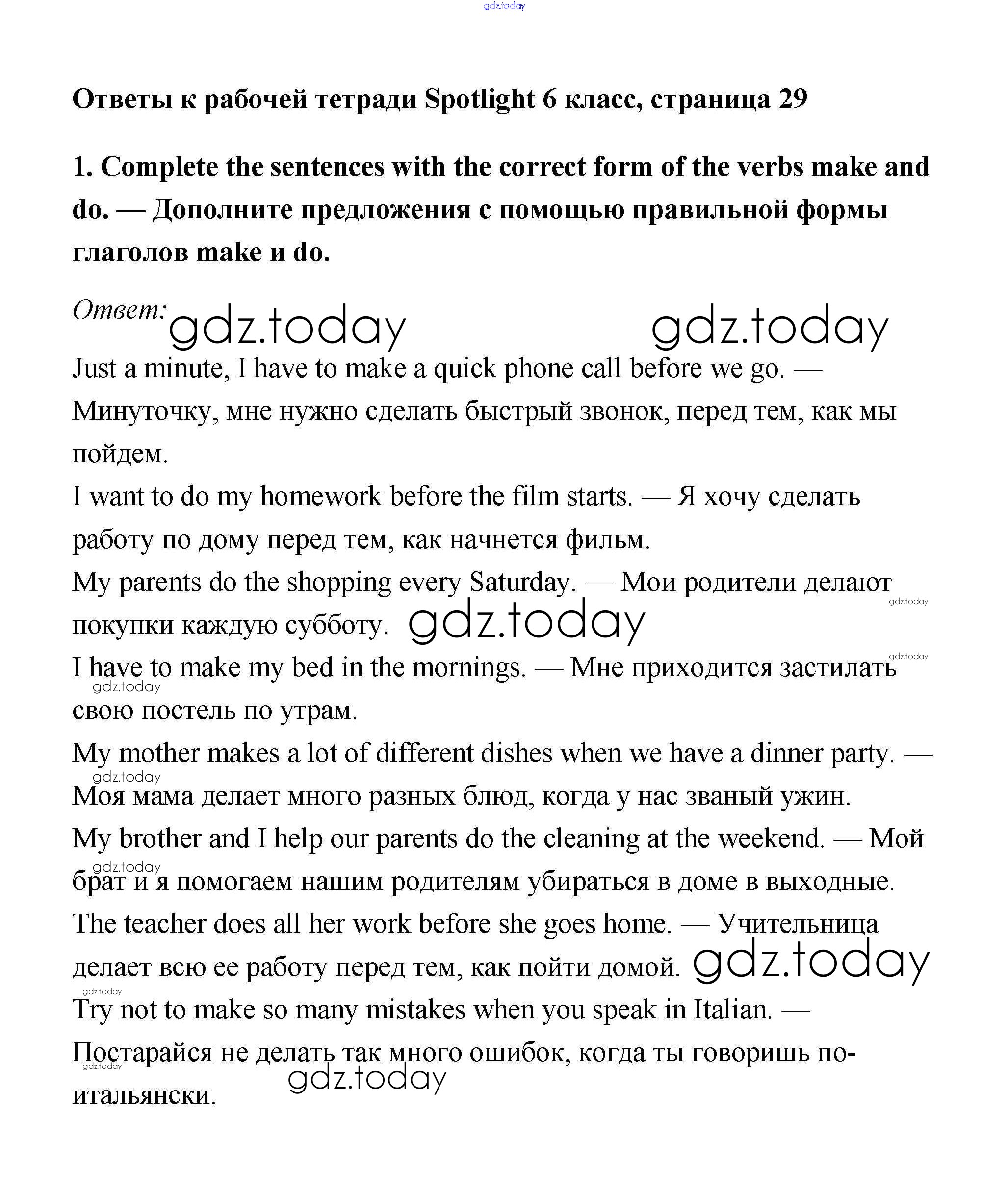 Ответы к Страницы (решение) 29 Рабочей тетради по Английскому языку для 6 класса Эванс, Дули Просвещение Spotlight 2011