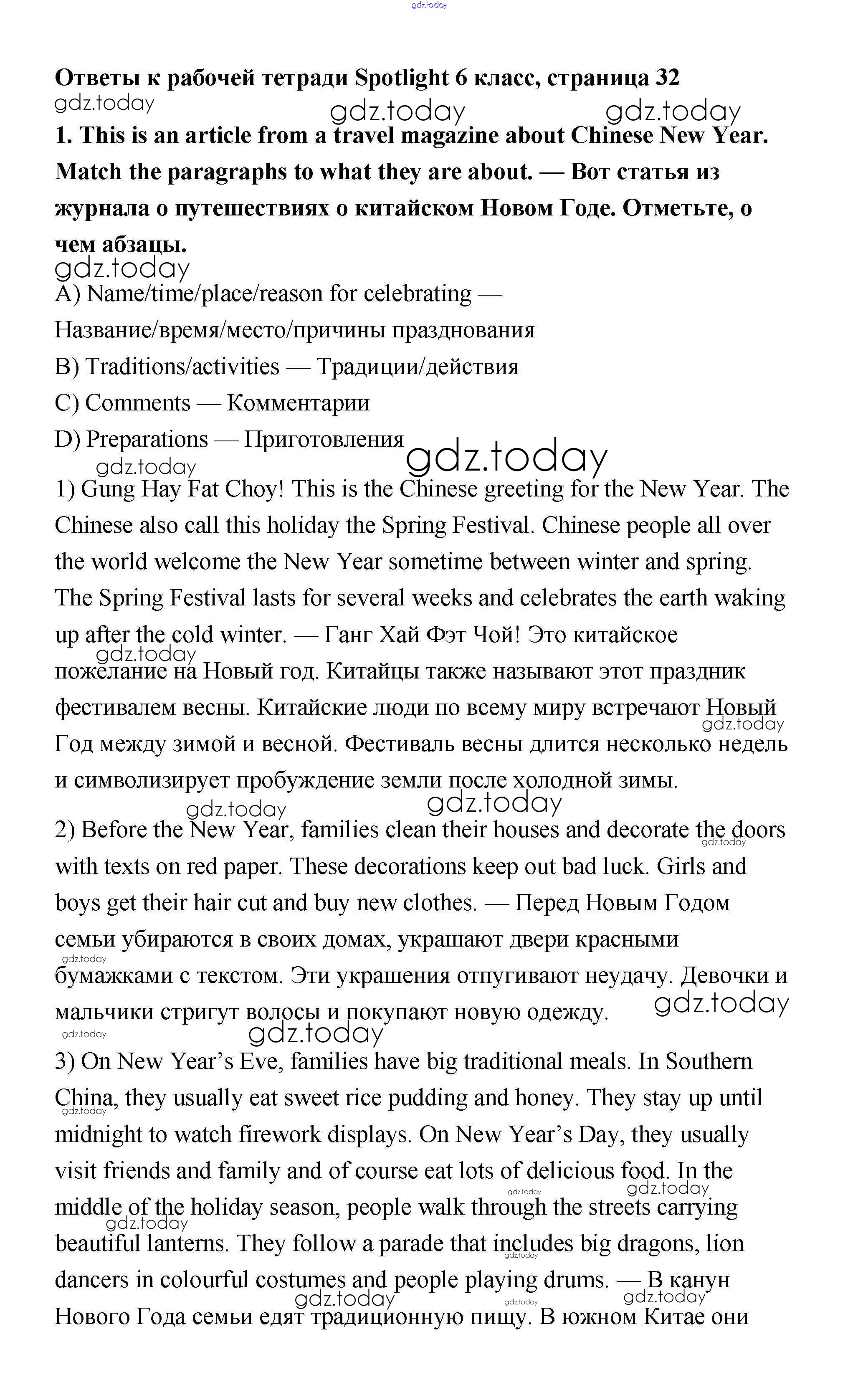 Ответы к Страницы (решение) 32 Рабочей тетради по Английскому языку для 6 класса Эванс, Дули Просвещение Spotlight 2011
