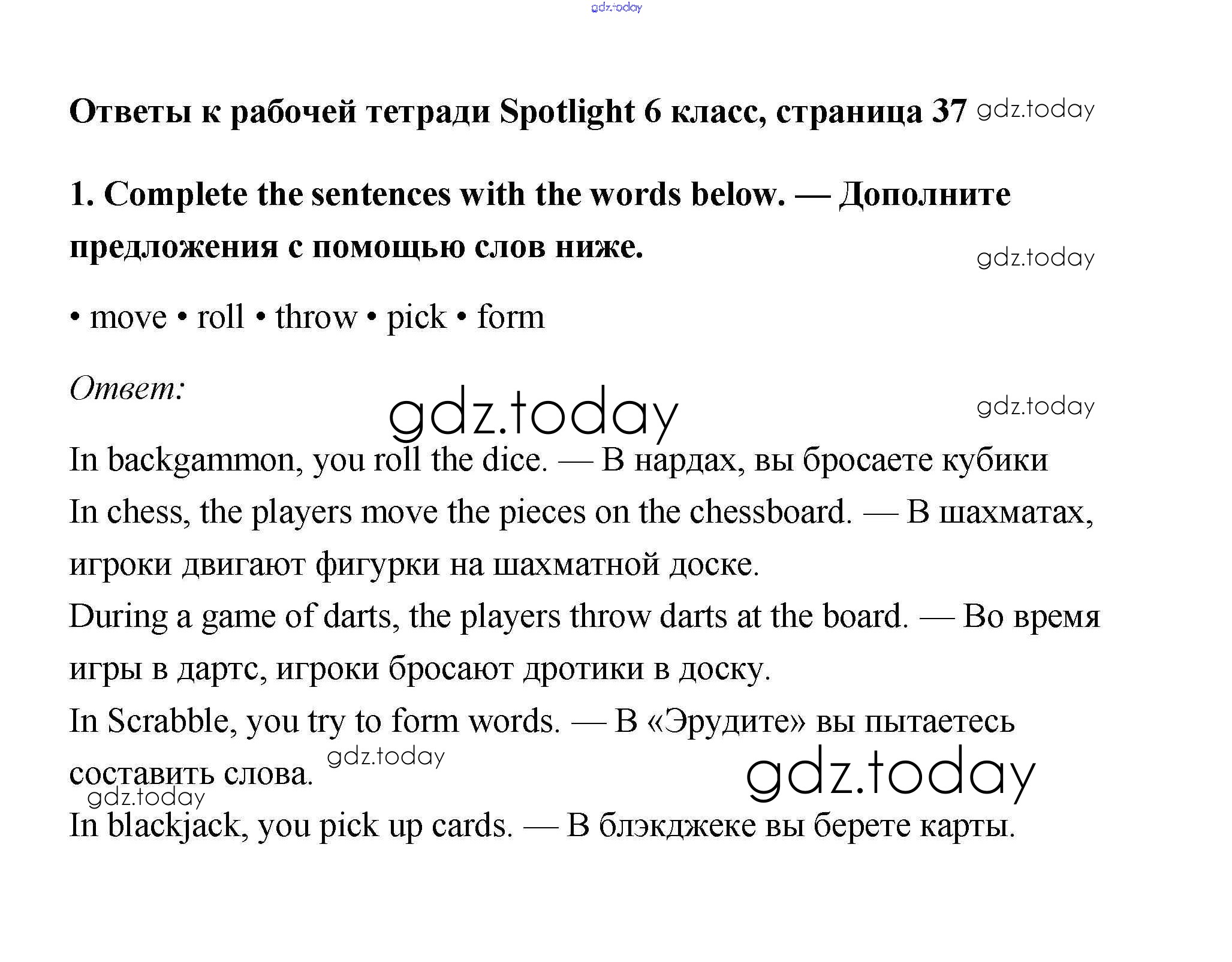 На страницах сайта gdz.today вы найдете учебный и вспомогательный материал, направленный на улучшения знаний школьной программы. ГДЗ - онлайн мир знаний Страницы (решение) 37 Рабочей тетради по Английскому языку для 6 класса Эванс, Дули Просвещение Spotlight 2011