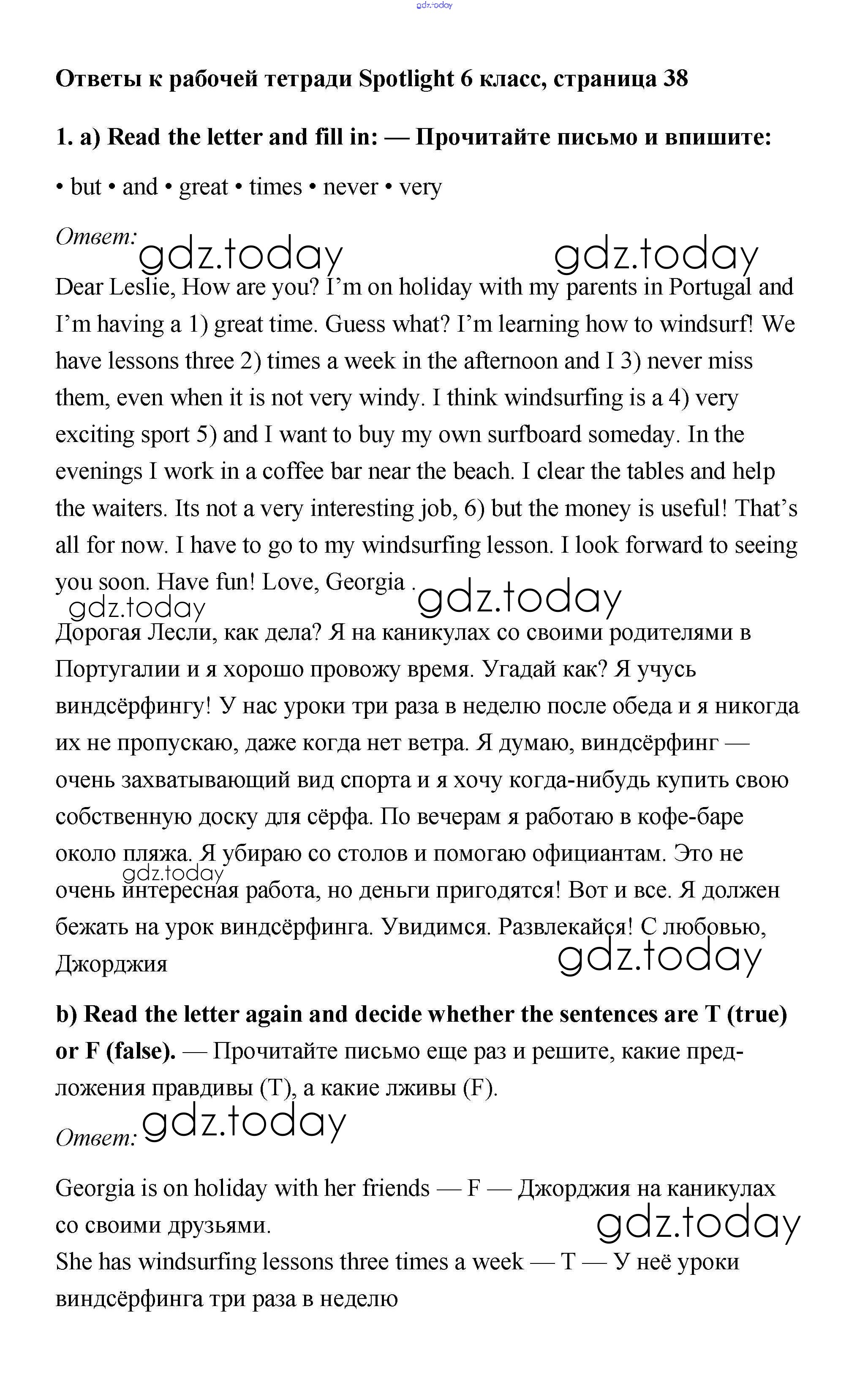 На страницах сайта gdz.today вы найдете учебный и вспомогательный материал, направленный на улучшения знаний школьной программы. ГДЗ - онлайн мир знаний Страницы (решение) 38 Рабочей тетради по Английскому языку для 6 класса Эванс, Дули Просвещение Spotlight 2011