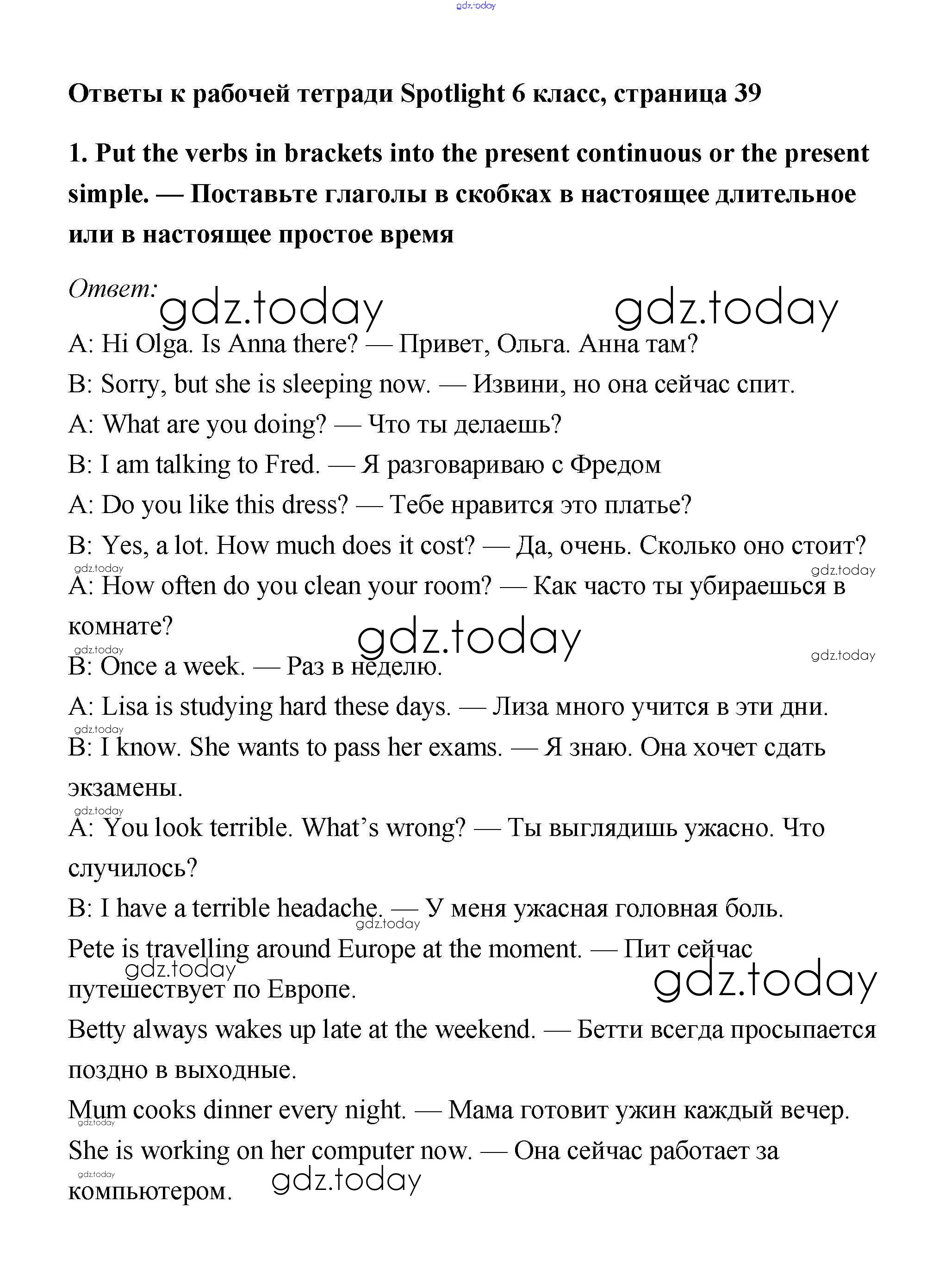 Ответы к Страницы (решение) 39 Рабочей тетради по Английскому языку для 6 класса Эванс, Дули Просвещение Spotlight 2011
