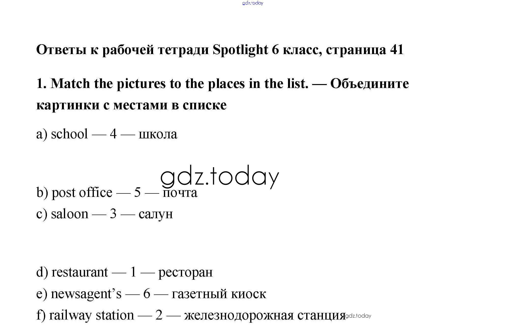 На страницах сайта gdz.today вы найдете учебный и вспомогательный материал, направленный на улучшения знаний школьной программы. ГДЗ - онлайн мир знаний Страницы (решение) 41 Рабочей тетради по Английскому языку для 6 класса Эванс, Дули Просвещение Spotlight 2011