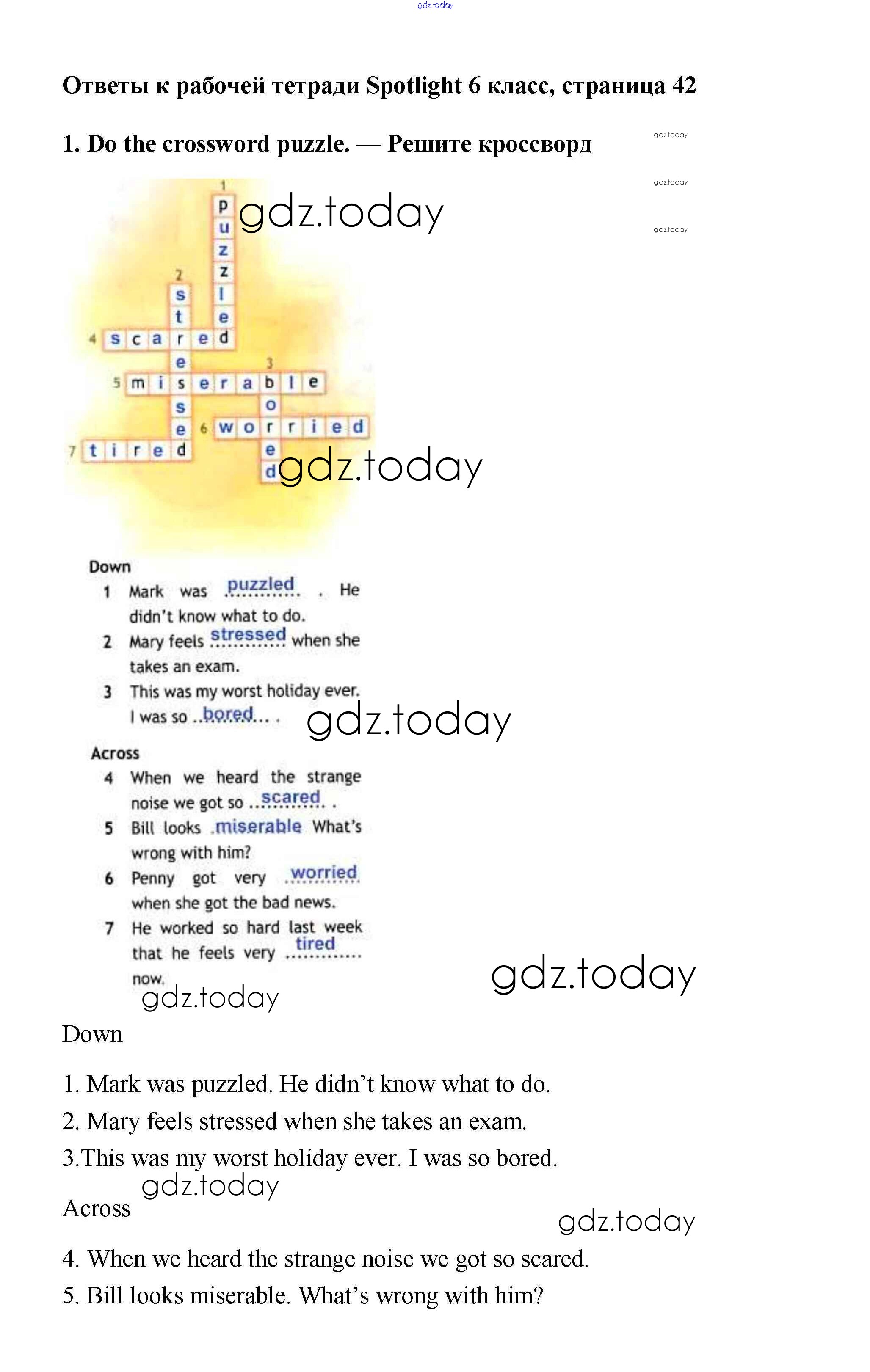 На страницах сайта gdz.today вы найдете учебный и вспомогательный материал, направленный на улучшения знаний школьной программы. ГДЗ - онлайн мир знаний Страницы (решение) 42 Рабочей тетради по Английскому языку для 6 класса Эванс, Дули Просвещение Spotlight 2011