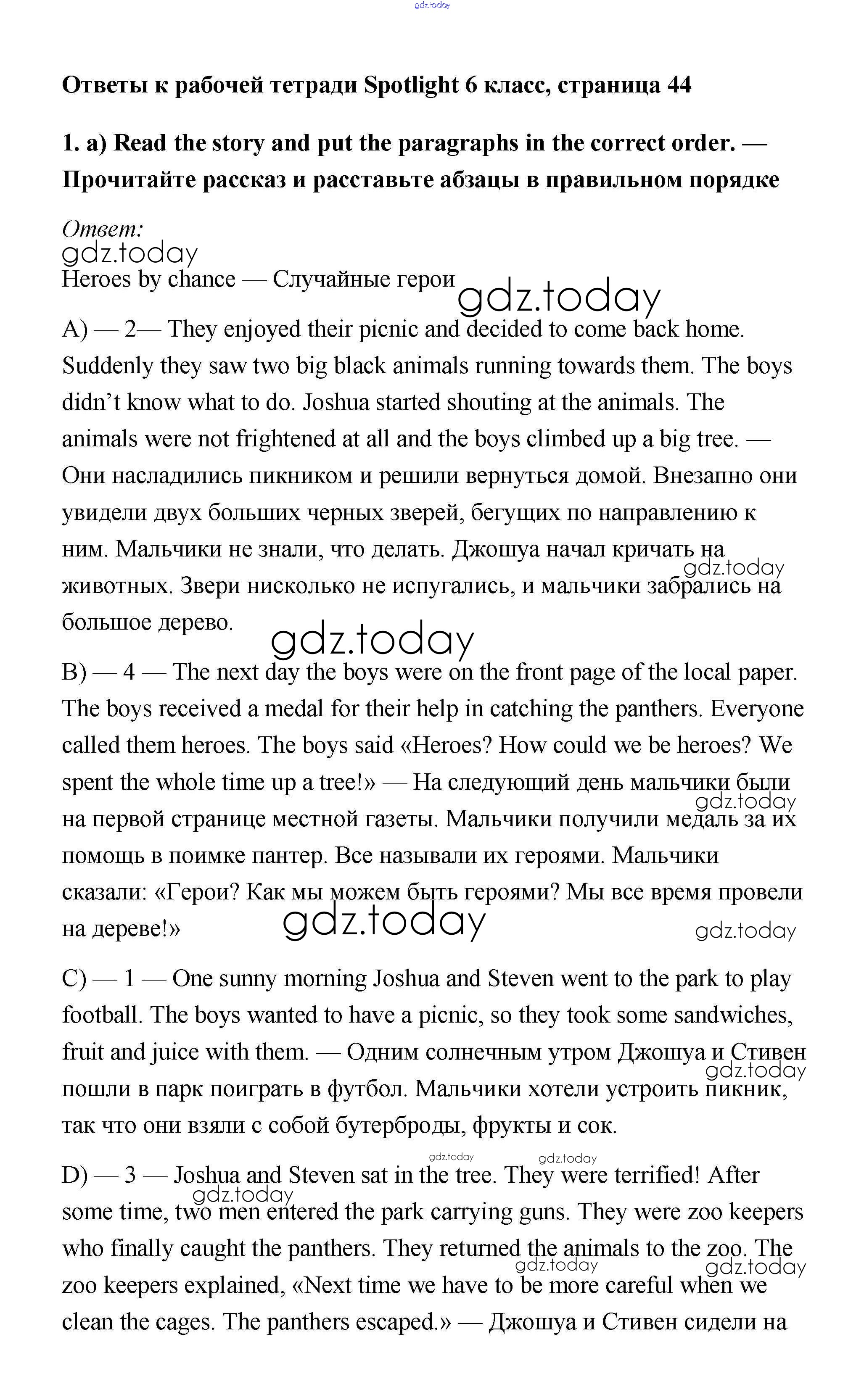 На страницах сайта gdz.today вы найдете учебный и вспомогательный материал, направленный на улучшения знаний школьной программы. ГДЗ - онлайн мир знаний Страницы (решение) 44 Рабочей тетради по Английскому языку для 6 класса Эванс, Дули Просвещение Spotlight 2011