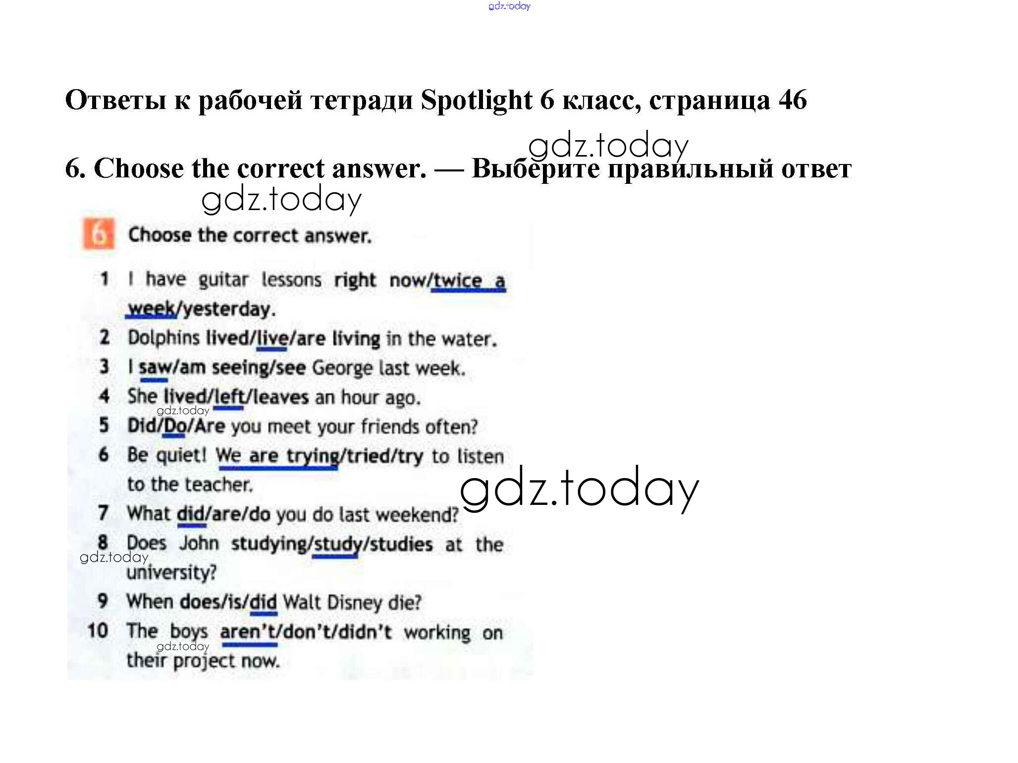 Ответы к Страницы (решение) 46 Рабочей тетради по Английскому языку для 6 класса Эванс, Дули Просвещение Spotlight 2011