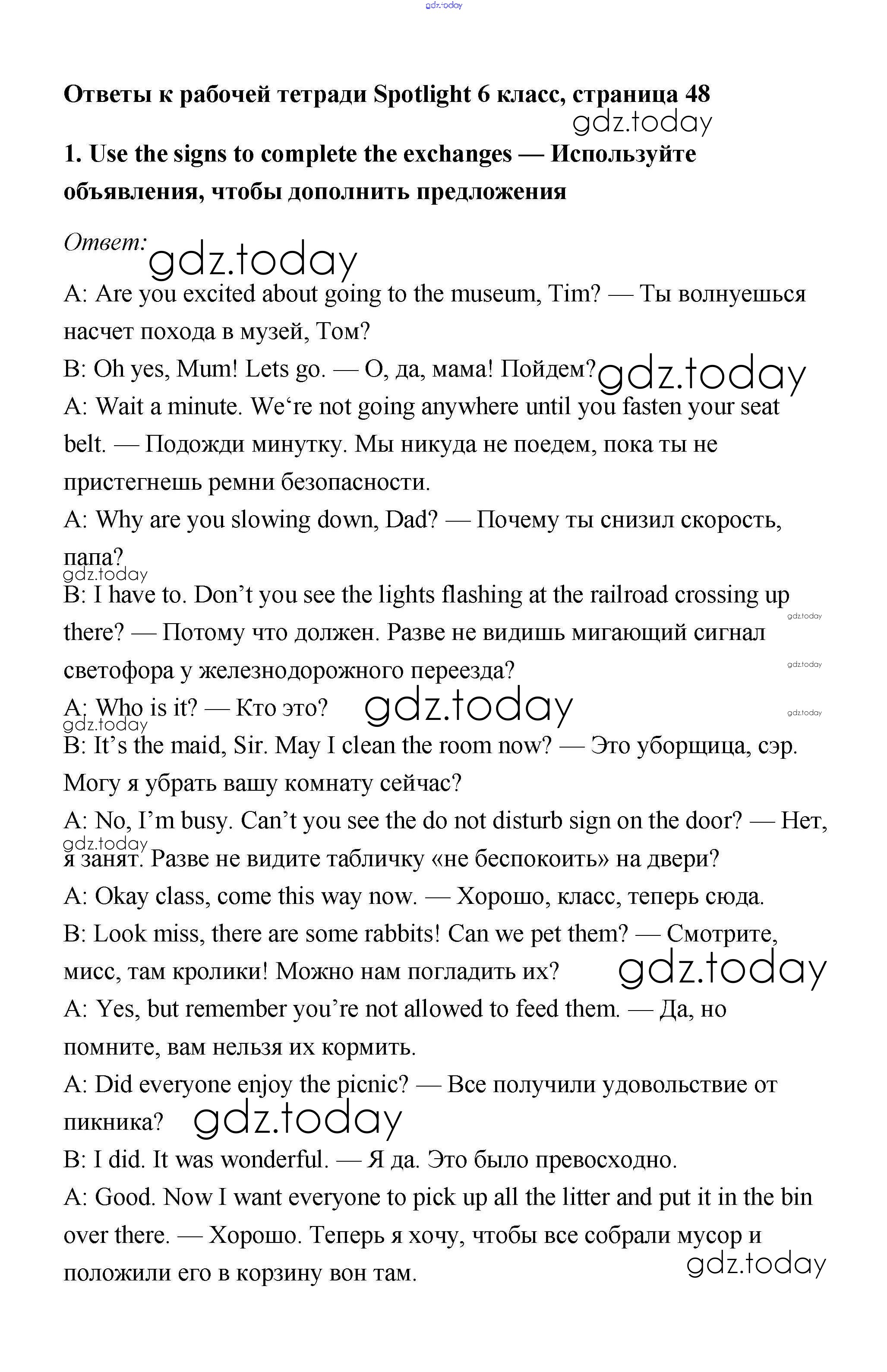 Ответы к Страницы (решение) 48 Рабочей тетради по Английскому языку для 6 класса Эванс, Дули Просвещение Spotlight 2011