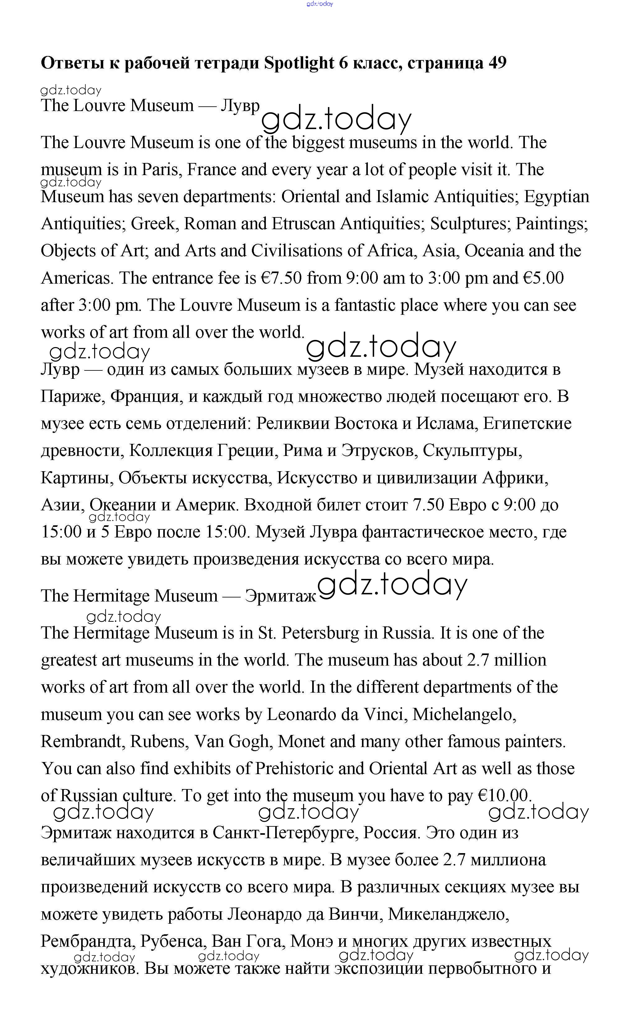 На страницах сайта gdz.today вы найдете учебный и вспомогательный материал, направленный на улучшения знаний школьной программы. ГДЗ - онлайн мир знаний Страницы (решение) 49 Рабочей тетради по Английскому языку для 6 класса Эванс, Дули Просвещение Spotlight 2011