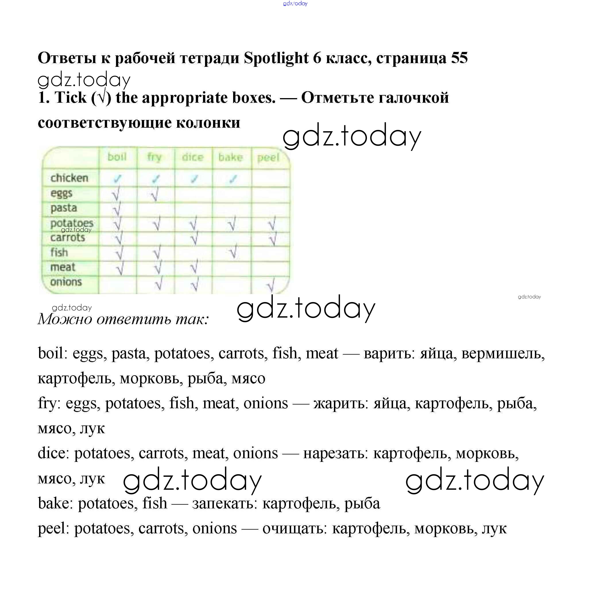 Ответы к Страницы (решение) 55 Рабочей тетради по Английскому языку для 6 класса Эванс, Дули Просвещение Spotlight 2011