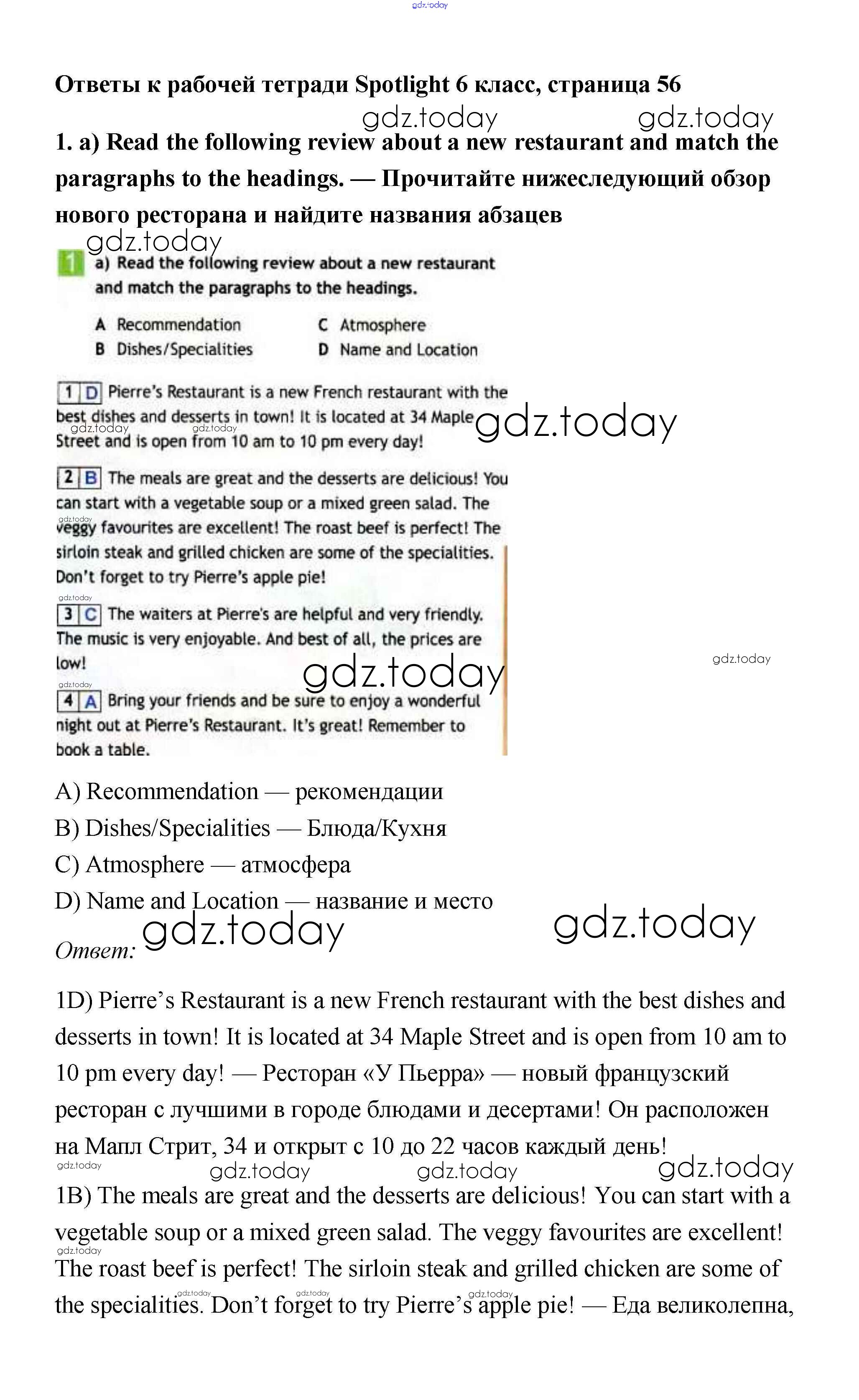 Ответы к Страницы (решение) 56 Рабочей тетради по Английскому языку для 6 класса Эванс, Дули Просвещение Spotlight 2011