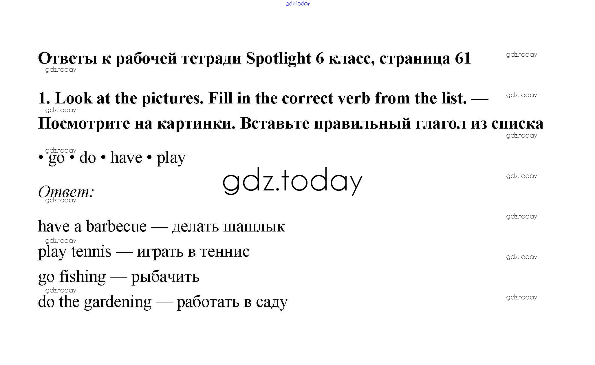 Ответы к Страницы (решение) 61 Рабочей тетради по Английскому языку для 6 класса Эванс, Дули Просвещение Spotlight 2011