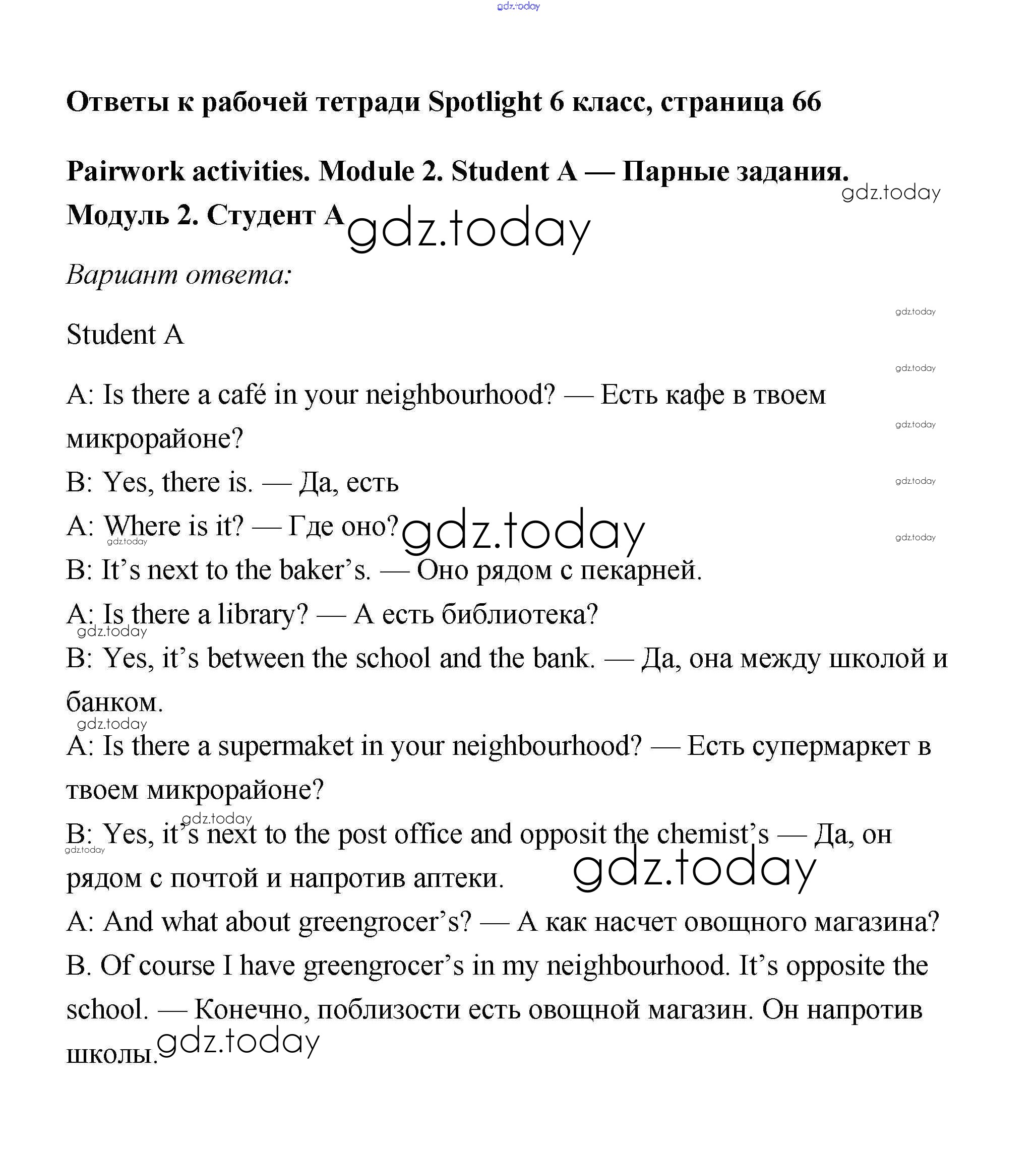 Ответы к Страницы (решение) 66 Рабочей тетради по Английскому языку для 6 класса Эванс, Дули Просвещение Spotlight 2011