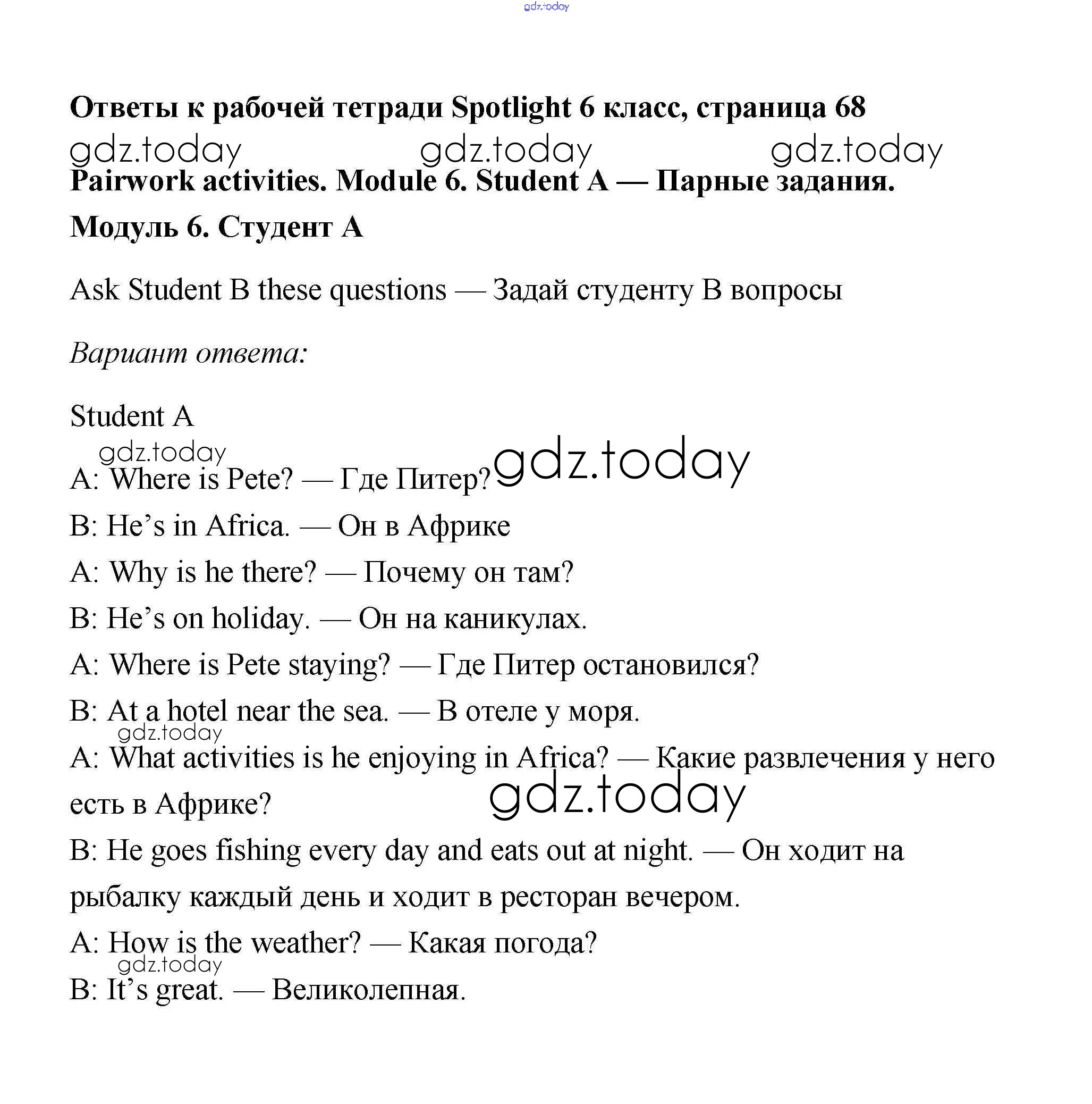 Ответы к Страницы (решение) 68 Рабочей тетради по Английскому языку для 6 класса Эванс, Дули Просвещение Spotlight 2011