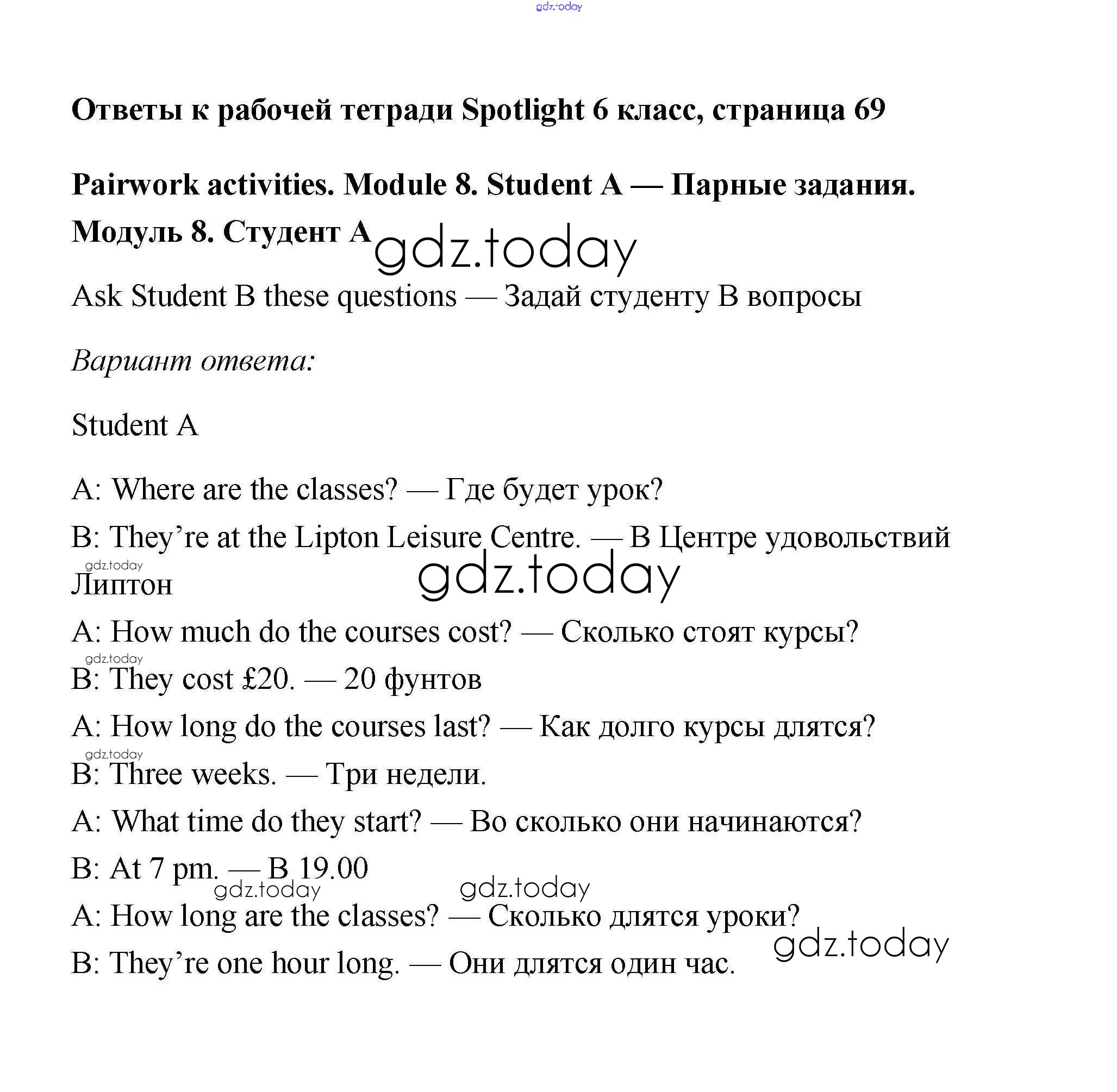 Ответы к Страницы (решение) 69 Рабочей тетради по Английскому языку для 6 класса Эванс, Дули Просвещение Spotlight 2011