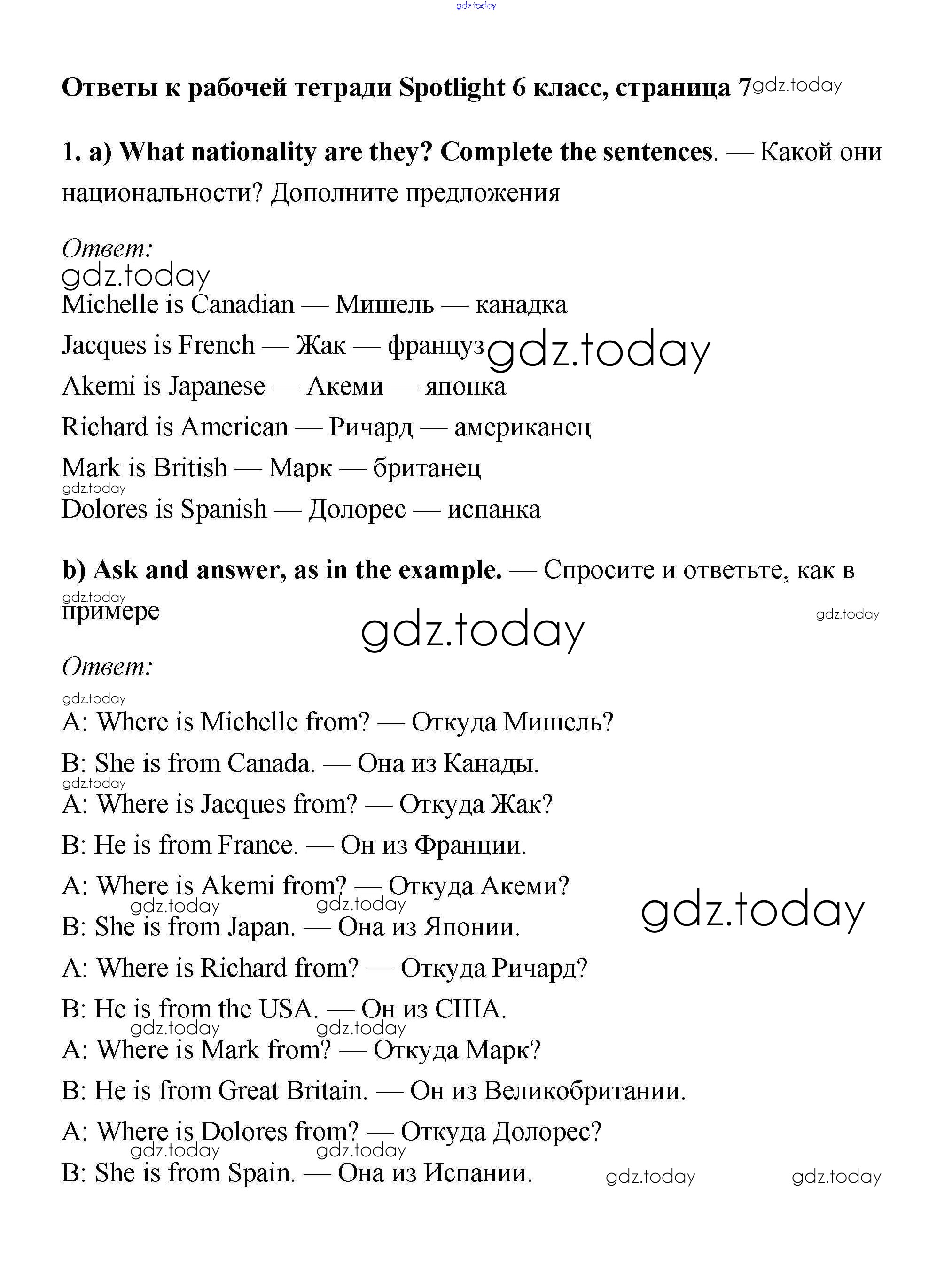 Ответы к Страницы (решение) 7 Рабочей тетради по Английскому языку для 6 класса Эванс, Дули Просвещение Spotlight 2011