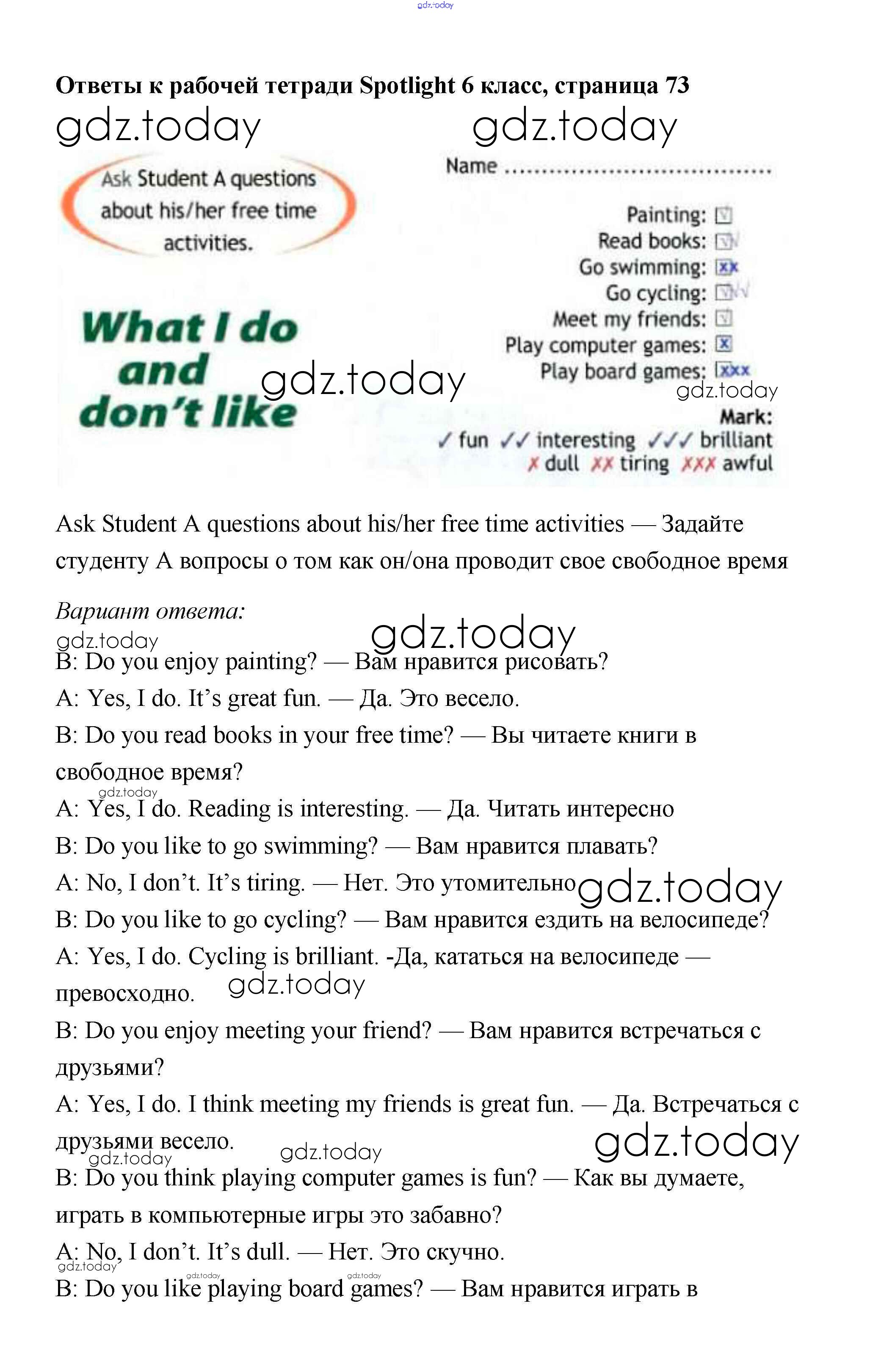 Ответы к Страницы (решение) 73 Рабочей тетради по Английскому языку для 6 класса Эванс, Дули Просвещение Spotlight 2011