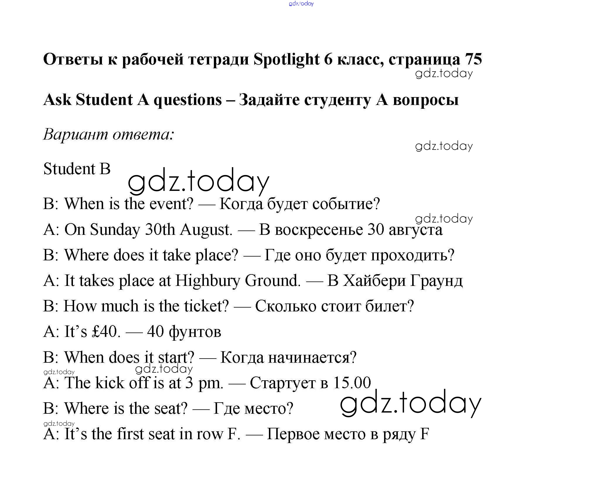 Ответы к Страницы (решение) 75 Рабочей тетради по Английскому языку для 6 класса Эванс, Дули Просвещение Spotlight 2011